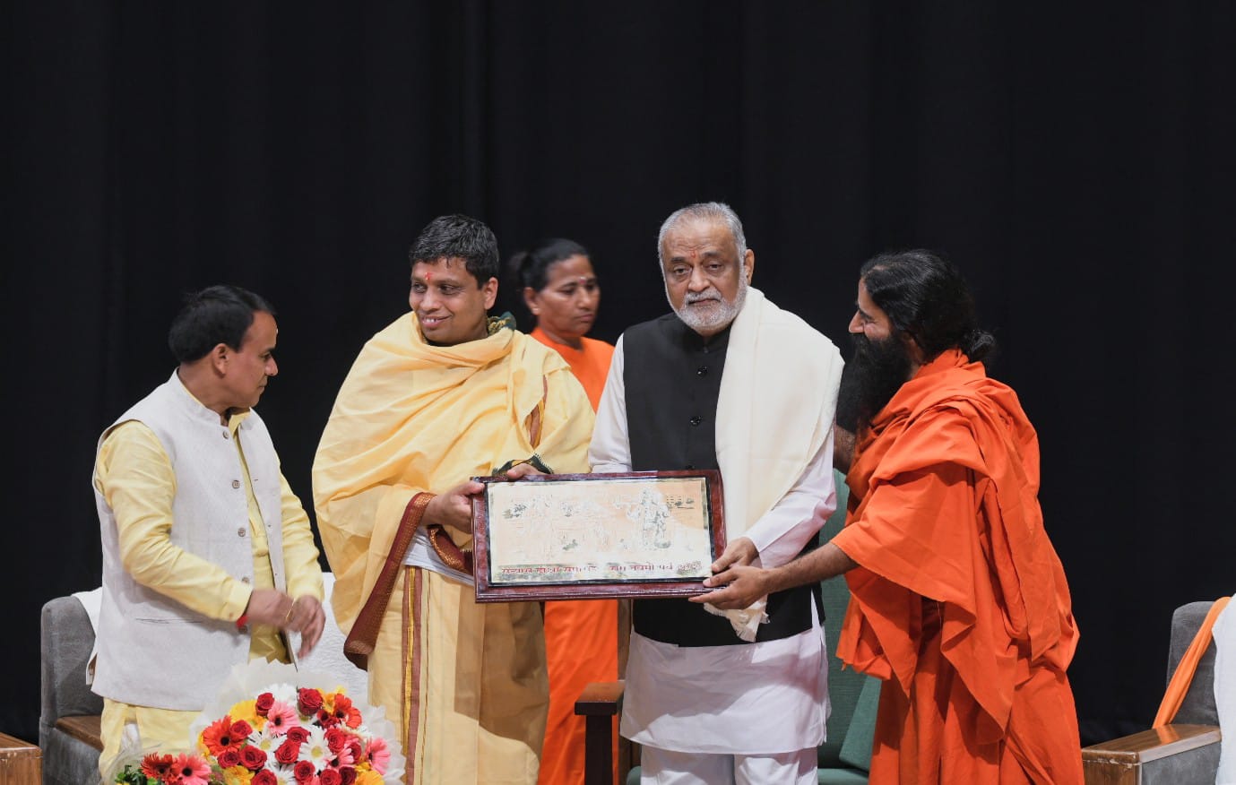 (उत्तराखंड के शिक्षा मंत्री, योग गुरु बाबा रामदेव और आचार्य बालकृष्ण भी उपस्थित रहे)