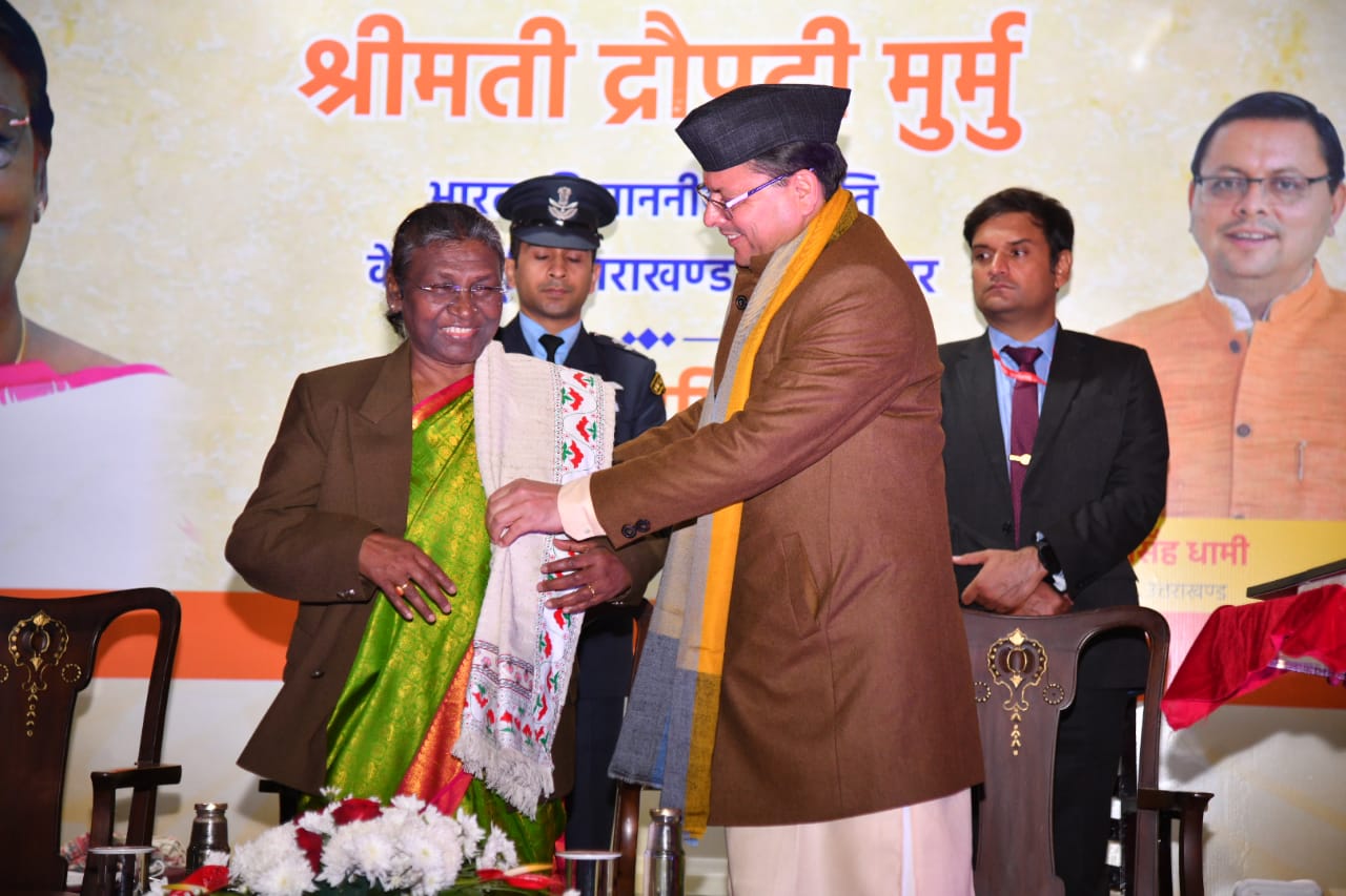 राष्ट्रपति श्रीमती द्रोपदी मुर्मु का पहली बार उत्तराखण्ड आगमन पर मुख्यमंत्री आवास में नागरिक अभिनन्दन किया गया। मुख्यमंत्री आवास में आयोजित गरिमापूर्ण कार्यक्रम में राष्ट्रपति ने 2001.94 करोड़ रूपये की 09 विकास योजनाओं का लोकार्पण और शिलान्यास किया। राष्ट्रपति ने 528.35 करोड़ रूपये की 03 योजनाओं का लोकार्पण और 1473.59 करोड़ की 06 योजनाओं का शिलान्यास किया। इस अवसर पर राज्यपाल लेफ्टिनेंट जनरल गुरमीत सिंह (से.नि.), मुख्यमंत्री श्री पुष्कर सिंह धामी एवं अन्य गणमान्य उपस्थित रहे।