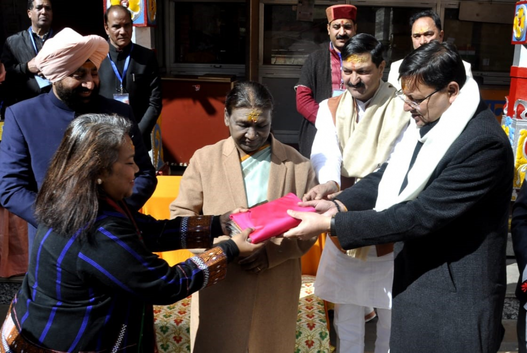 मुख्यमंत्री पुष्कर सिंह धामी ने मंदिर परिसर में राष्ट्रपति को भोजपत्र पर बनी बद्रीनाथ मंदिर की प्रतिकृति, आरती और स्थानीय उत्पादों की टोकरी भेंट की। भू-बैकुंठ धाम की अलौकिक सुंदरता देख राष्ट्रपति अभिभूत दिखीं। मंदिर में पूजा दर्शन के बाद राष्ट्रपति बद्रीनाथ से श्रीनगर के लिए प्रस्थान किया।