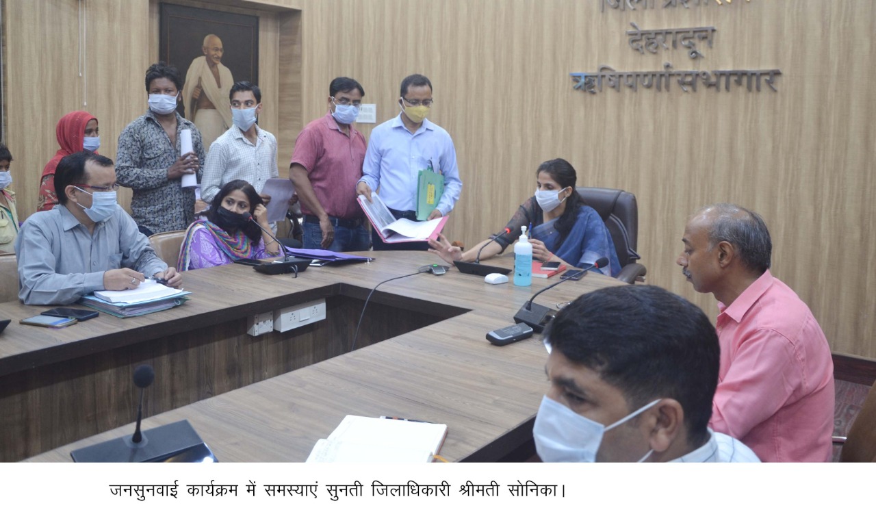 जनसुनवाई में मुख्य विकास अधिकारी झरना कमठान, अपर जिलाधिकारी प्रशासन डाॅ0 शिव कुमार बरनवाल, जिला विकास अधिकारी सुशील मोहन डोभाल, नगर मजिस्ट्रेट कुश्म चैहान, उप जिलाधिकारी सदर/मसूरी नरेश चन्द दुर्गापाल सहित संबंधित समस्त विभागों के अधिकारी उपस्थित रहे तथा उप जिलाधिकारी ऋषिकेश शैलेन्द्र नेगी, चकराता सौरभ असवाल, विकासनगर विनोद कुमार एवं डोईवाला युक्ता मिश्रा वर्चुअल माध्यम से जनसुनवाई में जुड़े रहे।