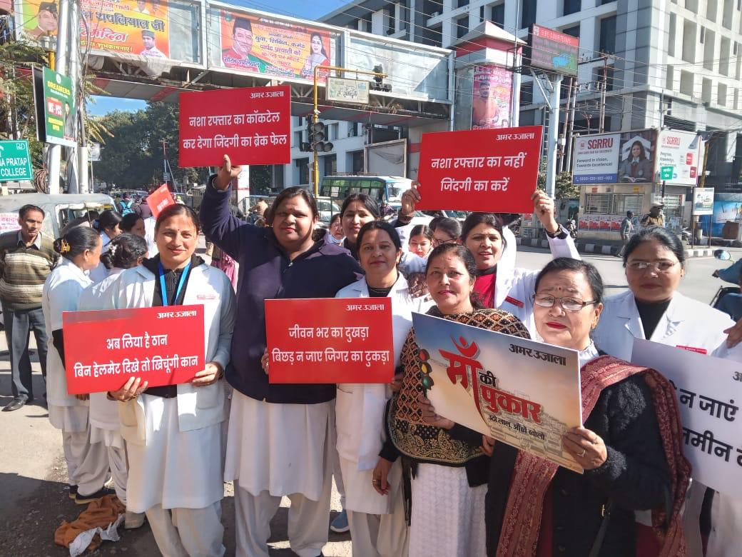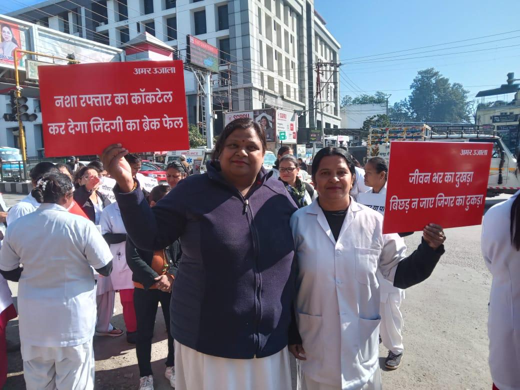 उत्तराखंड नर्सेज सर्विसेज एसोसिएशन के बैनर तले सड़क सुरक्षा जागरूकता रैली निकाली गई।