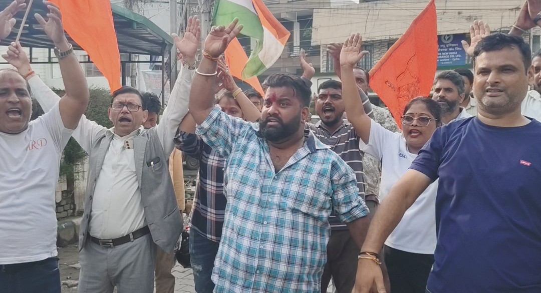 (भगवे के अपमान के विरोध में एक विशाल जन आक्रोश प्रदर्शन किया और धरना दिया)