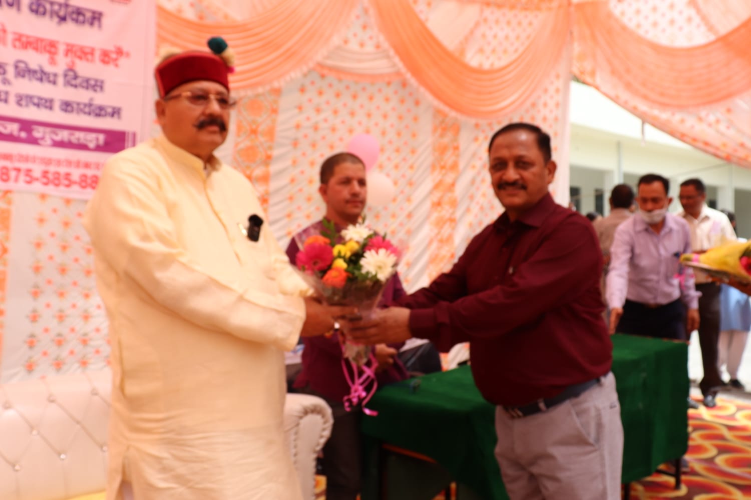 देहरादून। प्रदेश के लोक निर्माण, पर्यटन, सिंचाई, लघु सिंचाई, पंचायतीराज, संस्कृति, धर्मस्व, ग्रामीण निर्माण, जलागम प्रबंधन मंत्री सतपाल महाराज ने राष्ट्रीय तंबाकू नियंत्रण कार्यक्रम के तहत तंबाकू निषेध दिवस पर गुजराडा स्थित राजकीय इंटर कॉलेज के छात्र छात्राओं को तंबाकू का सेवन न करने की शपथ दिलाई।
