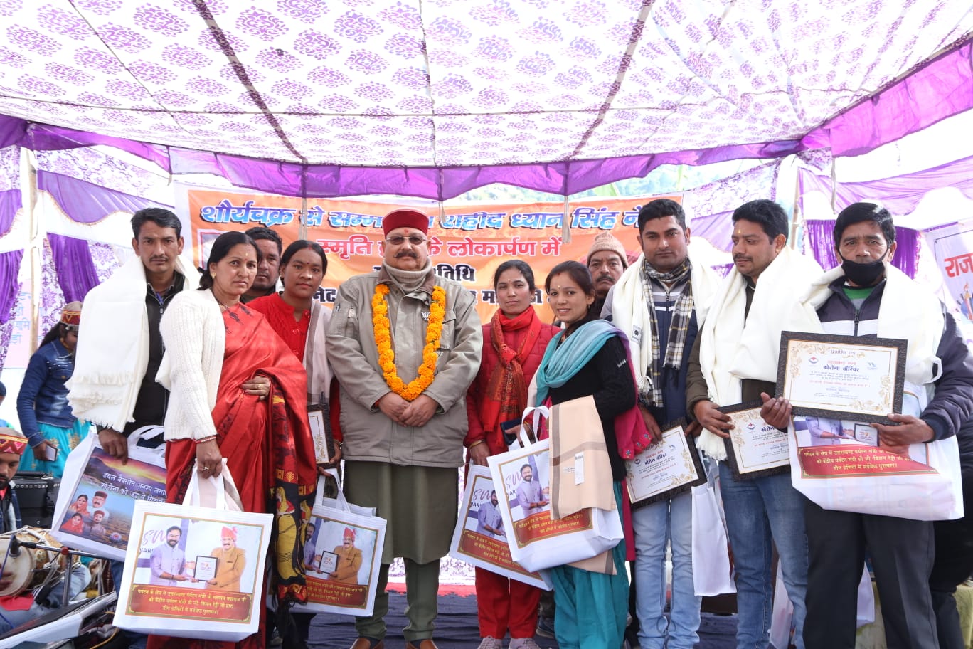 इस अवसर पर गडिगांव, पाबौ स्थित राजकीय इण्टरमीडियट कॉलेज परिसर में आयोजित एक कार्यक्रम के दौरान प्रदेश के पर्यटन, लोक निर्माण, सिंचाई, धर्मस्व एवं संस्कृति मंत्री व क्षेत्रीय विधायक सतपाल महाराज ने कोरोना काल में उत्कृष्ट कार्य करने वाली आंगनबाड़ी, सहायिका, आशा कार्यकत्री एवं महिला मंगल दल, ग्राम प्रधान, क्षेत्र पंचायत सदस्य, खण्ड विकास अधिकारी, स्वास्थ अधिकारी सहित अनेक लोगों को उपहार, प्रशस्ति पत्र देने के साथ-साथ उन्हें शॉल ओढाकर सम्मानित किया। उन्होने राजकीय इण्टरमीडियट कॉलेज, गडिगांव का नाम शौर्य चक्र से सम्मानित शहीद ध्यान सिंह नेगी के नाम से किये जाने और विद्यालय में अन्य कार्यों के लिए 1 लाख की धनराशि दिये जाने की भी घोषणा की।