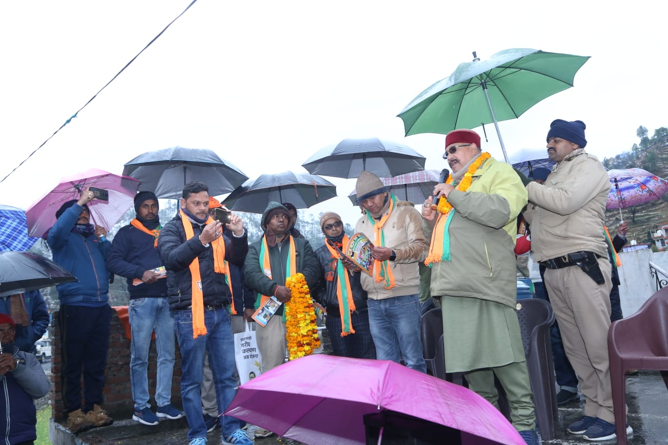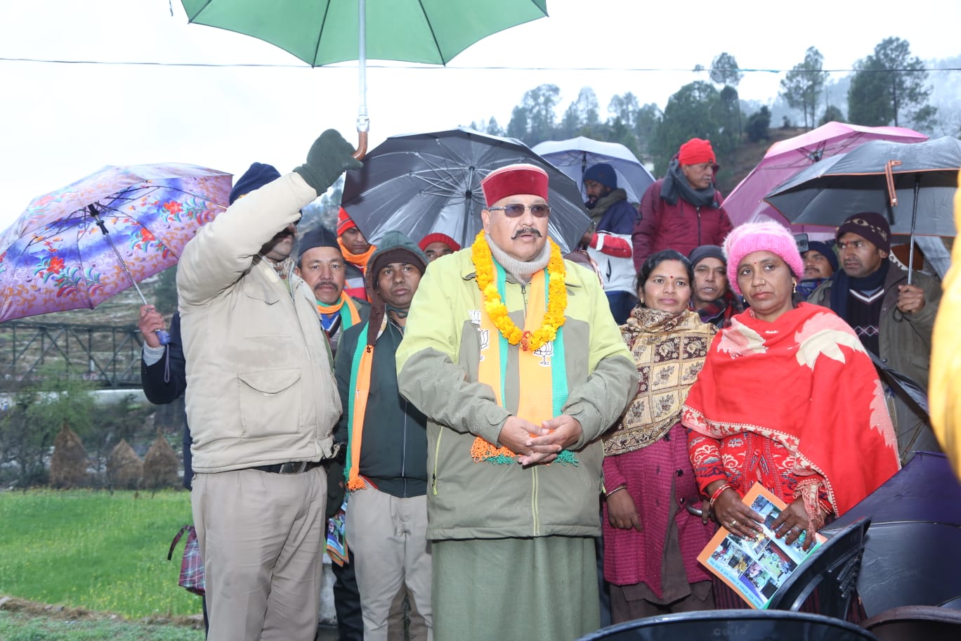भारतीय जनता पार्टी के वरिष्ठ नेता, आध्यात्मिक गुरु और चौबट्टाखाल विधानसभा निर्वाचन क्षेत्र के प्रत्याशी कैबिनेट मंत्री सतपाल महाराज ने शुक्रवार को बारिश और बर्फबारी के बावजूद मतदाताओं के बीच पहुंच कर भाजपा सरकार में किए गए विकास कार्यों के बारे में जानकारी देते हुए 14 फरवरी को कमल के फूल का बटन दबाने की अपील की ।