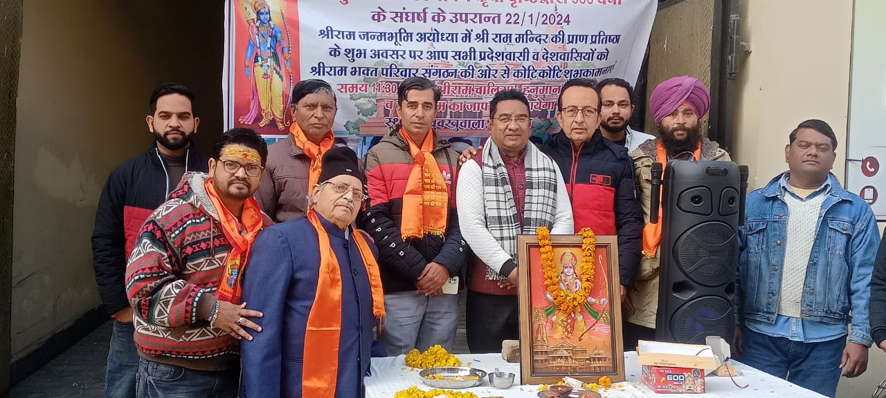 आज श्री राम जन्म भूमि अयोध्या में आयोजित हो रही प्राण प्रतिष्ठा को लेकर द्रोण नगरी पूरी तरह से राममय हो चुकी है व चहु और भगवा ही भगवा छाया हुआ है सभी भगवान श्री राम की भक्ति में रमे हुऐ है सब राम नाम की धूनी जमा रहे है जगह जगह कार्यक्रमों में भक्त भक्ति रस में श्री राम भजन व प्रसाद वितरण कर व दीपोत्सव के रूप में मना रहे है ऐसी प्रकार श्री राम परिवार संगठन द्वारा चखुवाला स्थित होटल हेरिटेज के बहार श्री राम भजन श्री राम चालीसा व हनुमान चालीसा व श्री राम जय राम जय राम के नारों से पूरा वातावरण इस नाम रूपी अमृतधारा से मंतर मुग्ध हो गया।