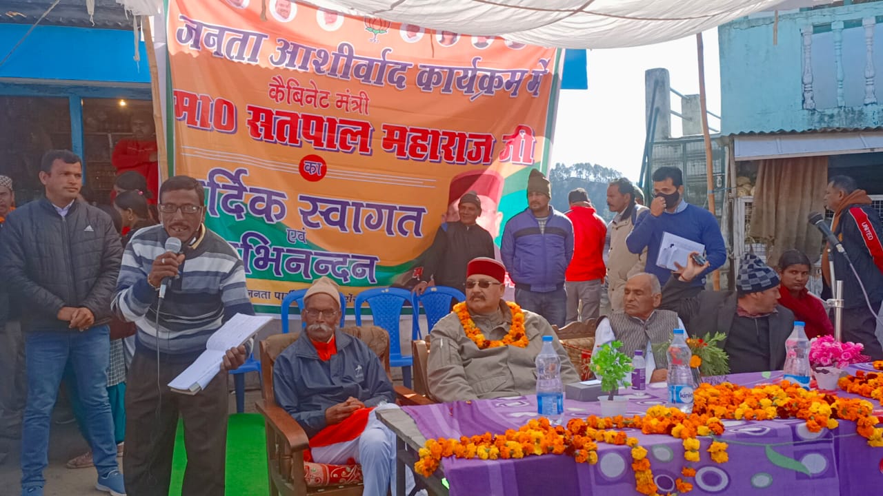 चौबट्टाखाल विधानसभा क्षेत्र के अंतर्गत पौडी पोखड़ा स्थित हंस इण्टर कॉलेज परिसर में आयोजित एक भव्य कार्यक्रम के दौरान शुक्रवार को प्रदेश के पर्यटन, लोक निर्माण, सिंचाई, धर्मस्व एवं संस्कृति मंत्री व क्षेत्रीय विधायक सतपाल महाराज ने कोरोना काल में उत्कृष्ट कार्य करने वाली आंगनबाड़ी, सहायिका, आशा कार्यकत्री एवं मंगल दल को सम्मानित करने के साथ-साथ पर्यटन एवं लोक निर्माण विभाग की 5 करोड़ 88 लाख 58 हजार की योजनाओं का लोकार्पण एवं शिलान्यास भी किया।