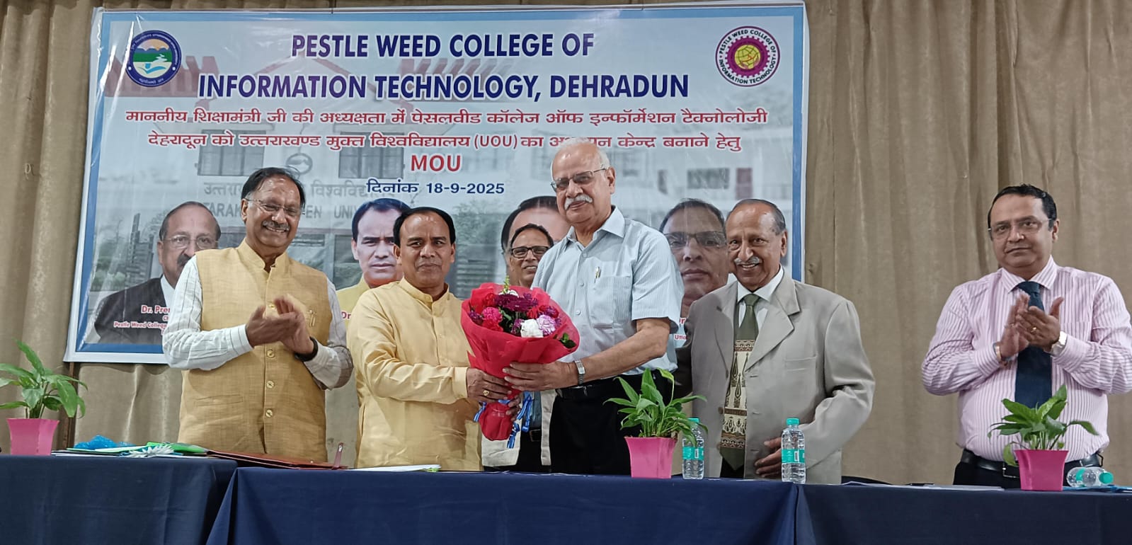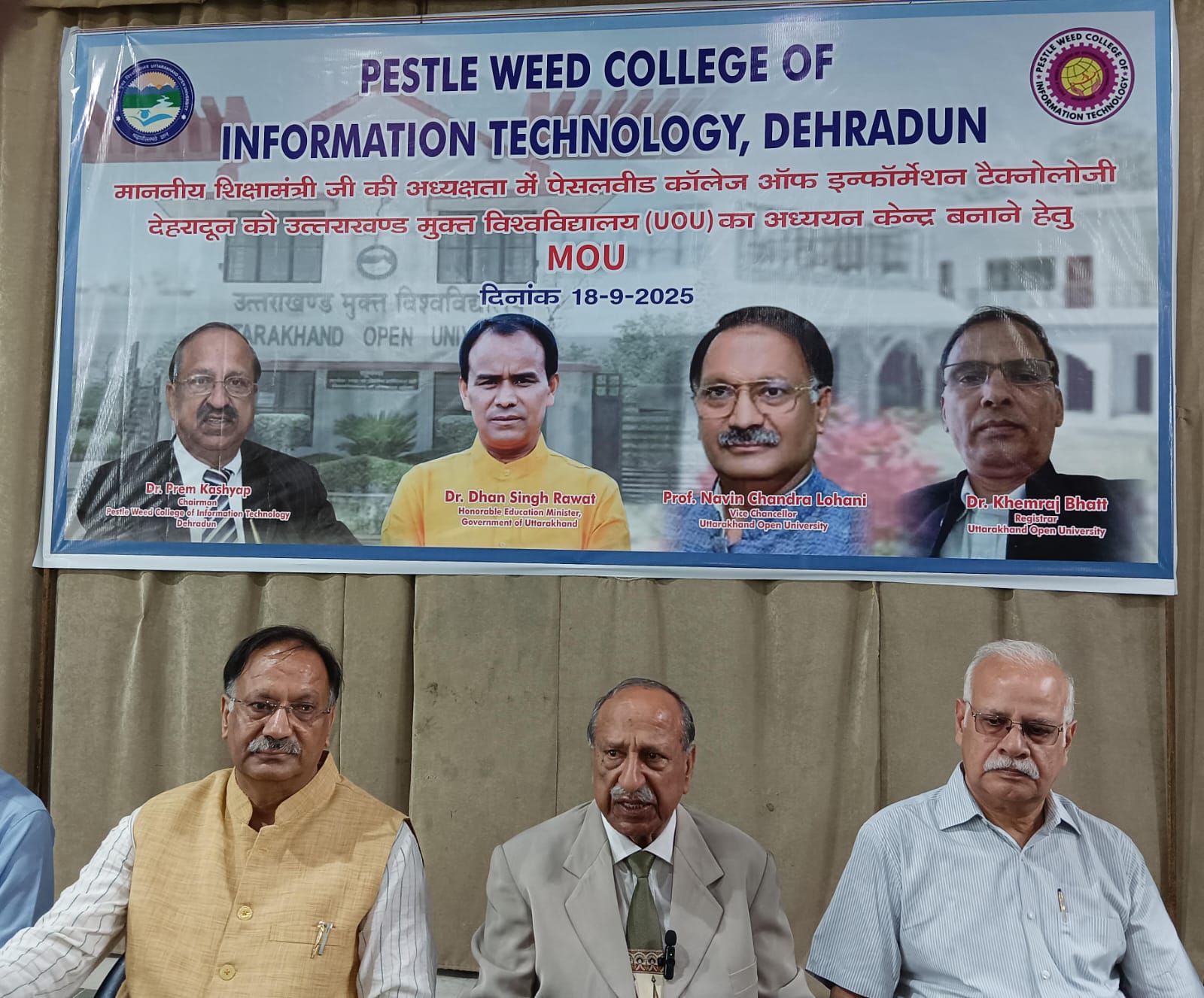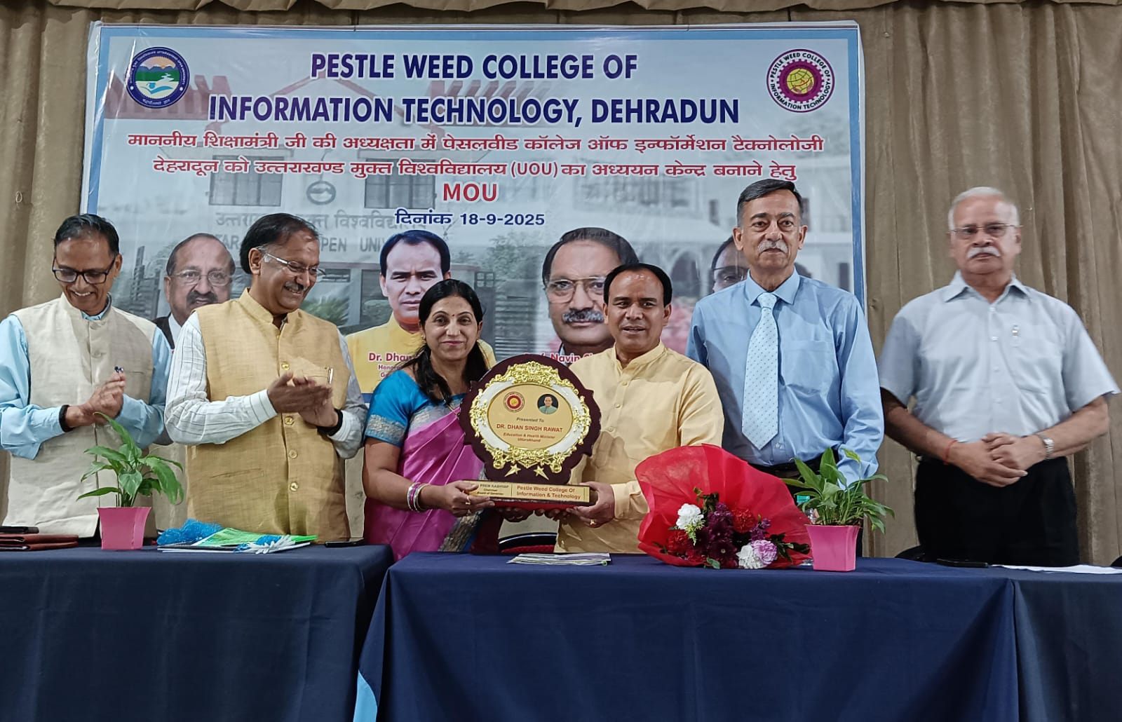 पेसल वीड कॉलेज ऑफ इन्फॉरमेशन टैक्नोलोजी, देहरादून को उत्तराखण्ड मुक्त विश्वविद्यालय का अध्ययन केंद्र बनाने हेतु समझौता ज्ञापन पर हस्ताक्षर किया।