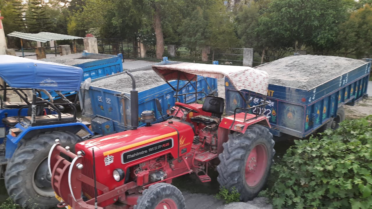 (04 ट्रैक्टर खनन सामग्री का परिवहन करते पाए गए)