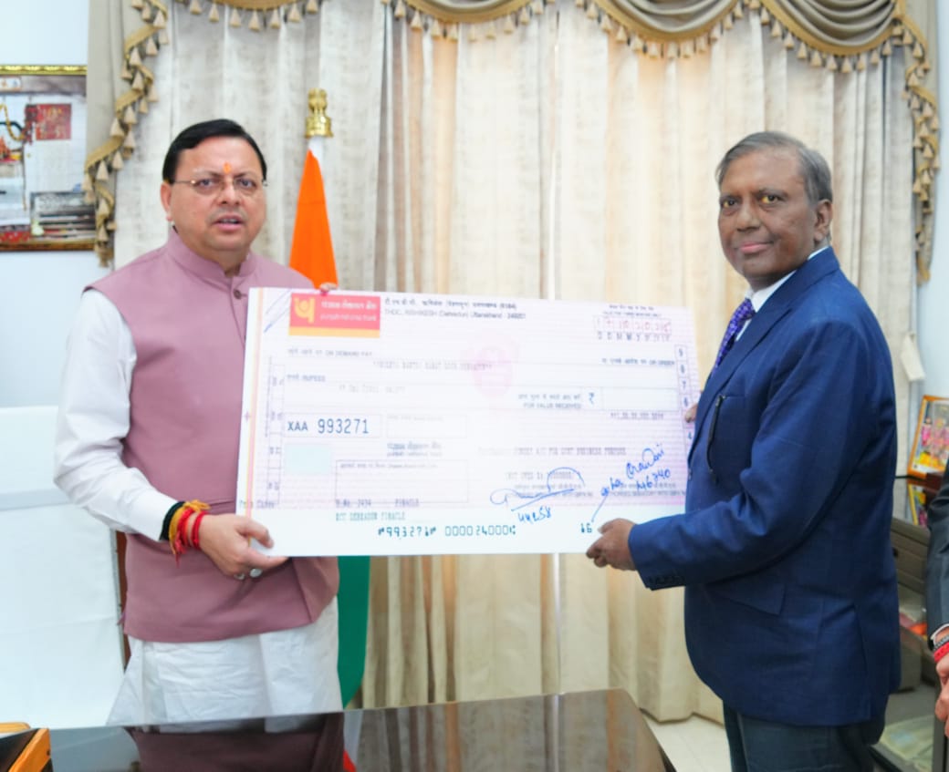 टीएचडीसी इंडिया लिमिटेड ने उत्तराखंड के मुख्यमंत्री राहत कोष में 1 करोड़ रुपये का योगदान दिया।