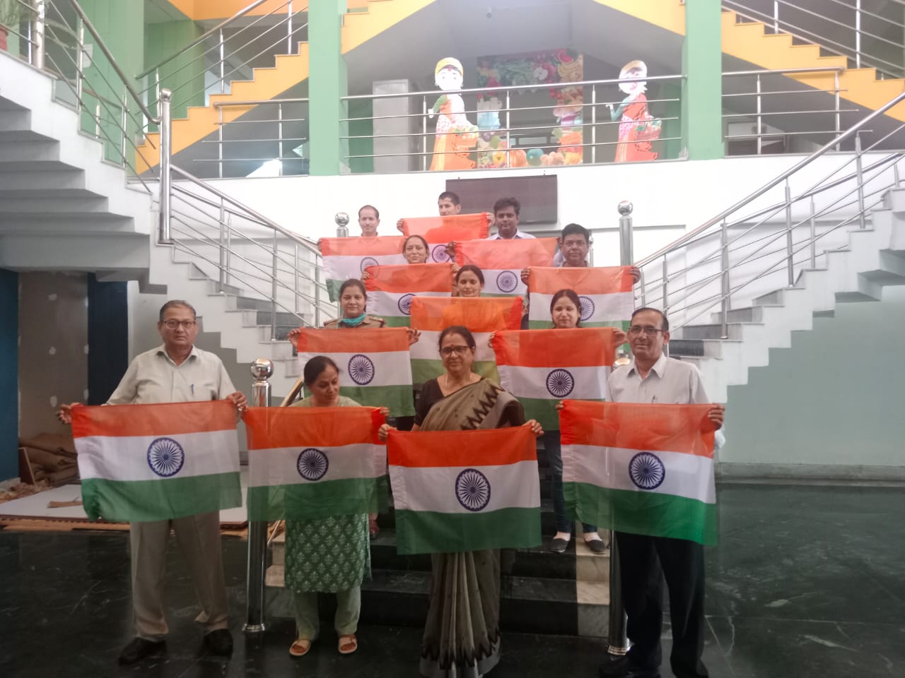 (समस्त कर्मचारियों को तिरंगे झंडे वितरित किए)
