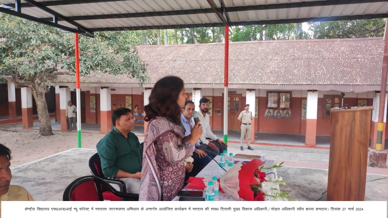 मुख्य विकास अधिकारी/नोडल अधिकारी- स्वीप, सुश्री झरना कमठान की अध्यक्षता में नगर निगम देहरादून क्षेत्रान्तर्गत पोलिंग बूथ संख्या 151,152 एवं 153 केन्द्रीय विद्यालय एफ0आर0आई न्यू फोरेस्ट में मतदाता जागरूकता अभियान आयोजित कराया गया।