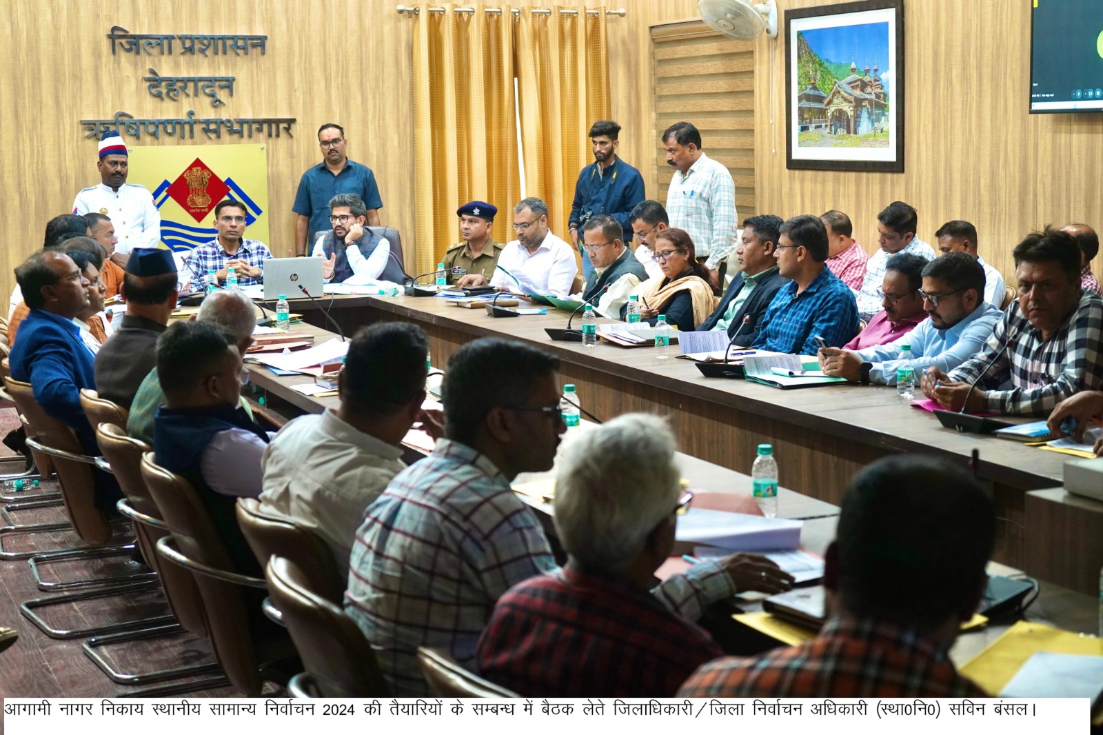 जिलाधिकारी/ जिला निर्वाचन अधिकारी ने समस्त नोडल, सह नोडल अधिकारिकों को निर्देशित किया कि सभी अधिकारी अलर्ट मोड में रहकर अपनी-अपनी तैयारी पहले से ही कर लें नागर निकाय स्थानीय सामान्य निर्वाचन-2024 की तिथि की कभी भी घोषणा संभावित है, इसलिए अधिकारी अपनी तैयारी पूर्ण रखें।