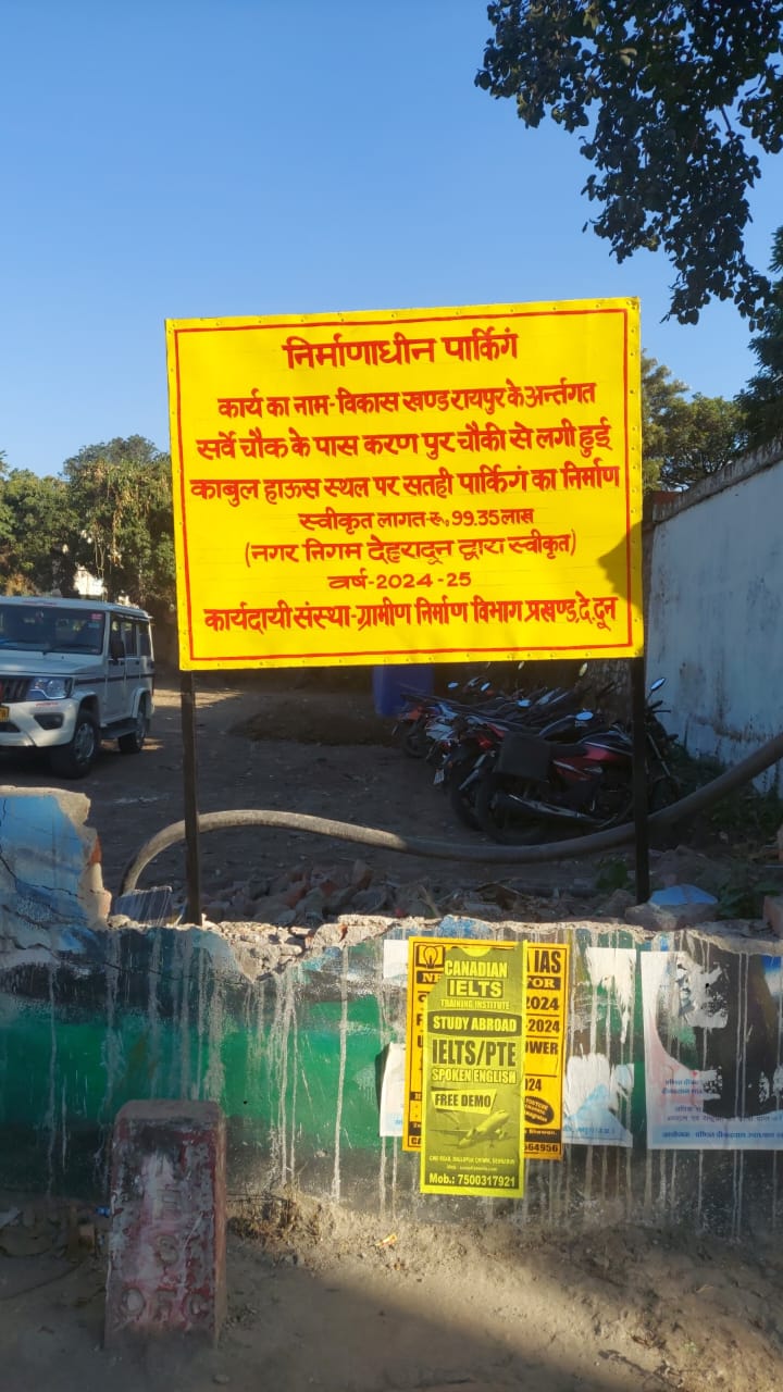 शहर में पार्किंग हेतु नये स्थल चिन्हित किए जा रहे। इसी क्रम में काबुल हाउस में 9988.304 वर्ग मीटर में विकसित की जा रही है पार्किंग, जिसमें लगभग 300 वाहन पार्क किये जा सकेंगे। 99.35 लाख है प्रोजेक्ट तेजी कार्य चल रहा है।
