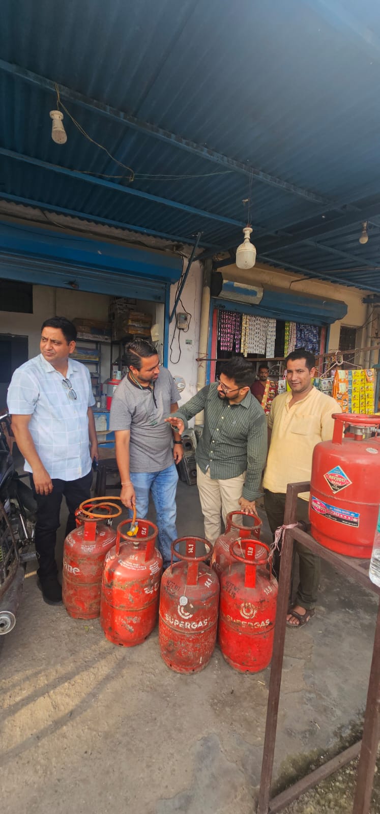खाद्य आपूर्ति विभाग की संयुक्त टीम द्वारा सेलाकुई स्थित बाजार में अवैध गैस रिफिलिंग पर छापेमारी की।