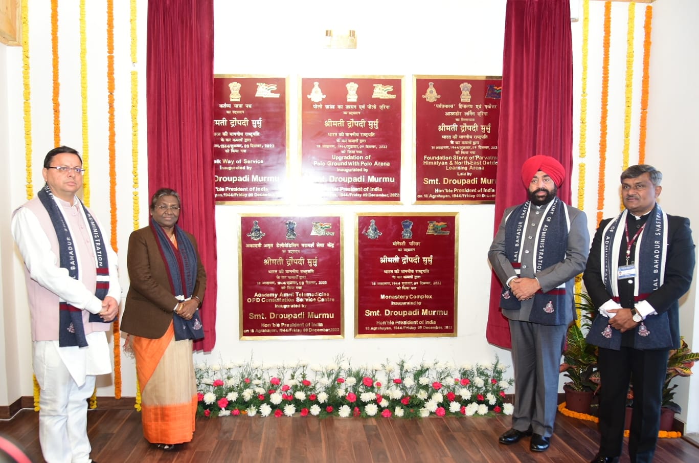 इससे पहले राष्ट्रपति श्रीमती द्रौपदी मुर्मु ने लाल बहादुर शास्त्री राष्ट्रीय प्रशासन अकादमी परिसर में पूर्व प्रधानमंत्री लाल बहादुर शास्त्री एवं पूर्व उप प्रधानमंत्री सरदार बल्लभ भाई पटेल की मूर्तियों पर माल्यार्पण कर उन्हें श्रद्धांजलि अर्पित की तथा अकादमी परिसर में स्थापित पोलो ग्राउंड के उन्नयन एवं पोलो एरिना, अकादमी कर्तव्य पथ, अकादमी अमृत टेलीमेडिसिन परामर्श सेवा केन्द्र एवं मोनेस्टी परिसर तथा वॉक-वे ऑफ सर्विस का उद्घाटन किया। राष्ट्रपति द्वारा पर्वतमाला हिमालय एवं पूर्वोत्तर आउटडोर लर्निंग एरिना का भी शिलान्यास किया गया। इन योजनाओं के सम्बन्ध में अकादमी निदेशक द्वारा राष्ट्रपति को विस्तार से जानकारी भी दी गई। इस अवसर पर राज्यपाल लेफ्टिनेंट जनरल गुरमीत सिंह (से.नि.) एवं मुख्यमंत्री श्री पुष्कर सिंह धामी भी इन कार्यक्रमों में राष्ट्रपति के साथ मौजूद रहे।