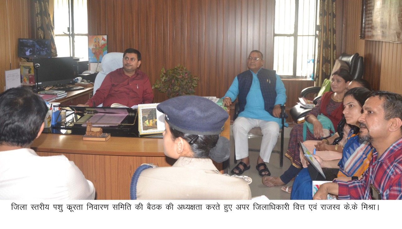 जिलाधिकारी वित्त एवं राजस्व के.के मिश्रा की अध्यक्षता में जिला स्तरीय पशु कू्ररता निवारण समिति की बैठक की।