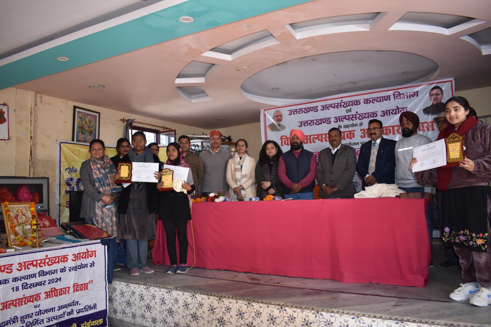 स्थान डोईवाला मेें साफ्टोनिक्स सोशल वेलफेयर सोसाइटी के सभागार में विश्व अल्पसंख्यक अधिकार दिवस का आयोजन किया गया। जिसमेें मुख्य अतिथि के रूप में श्री राजेन्द्र कुमार निदेशक, अल्पसंख्यक कल्याण, उत्तराखण्ड के सानिध्य में जन-जागरूकता कार्यक्रम किया गया। कार्यक्रम में श्री जगदीश सिंह रावत, सचिव, उत्तराखण्ड अल्पसंख्यक आयेाग द्वारा मा0 आयेाग के कृत, एवं अल्पसंख्यक कल्याण की योजनाअेां के सम्बन्ध में विस्तृत रूप से जानकारी दी गयीं।