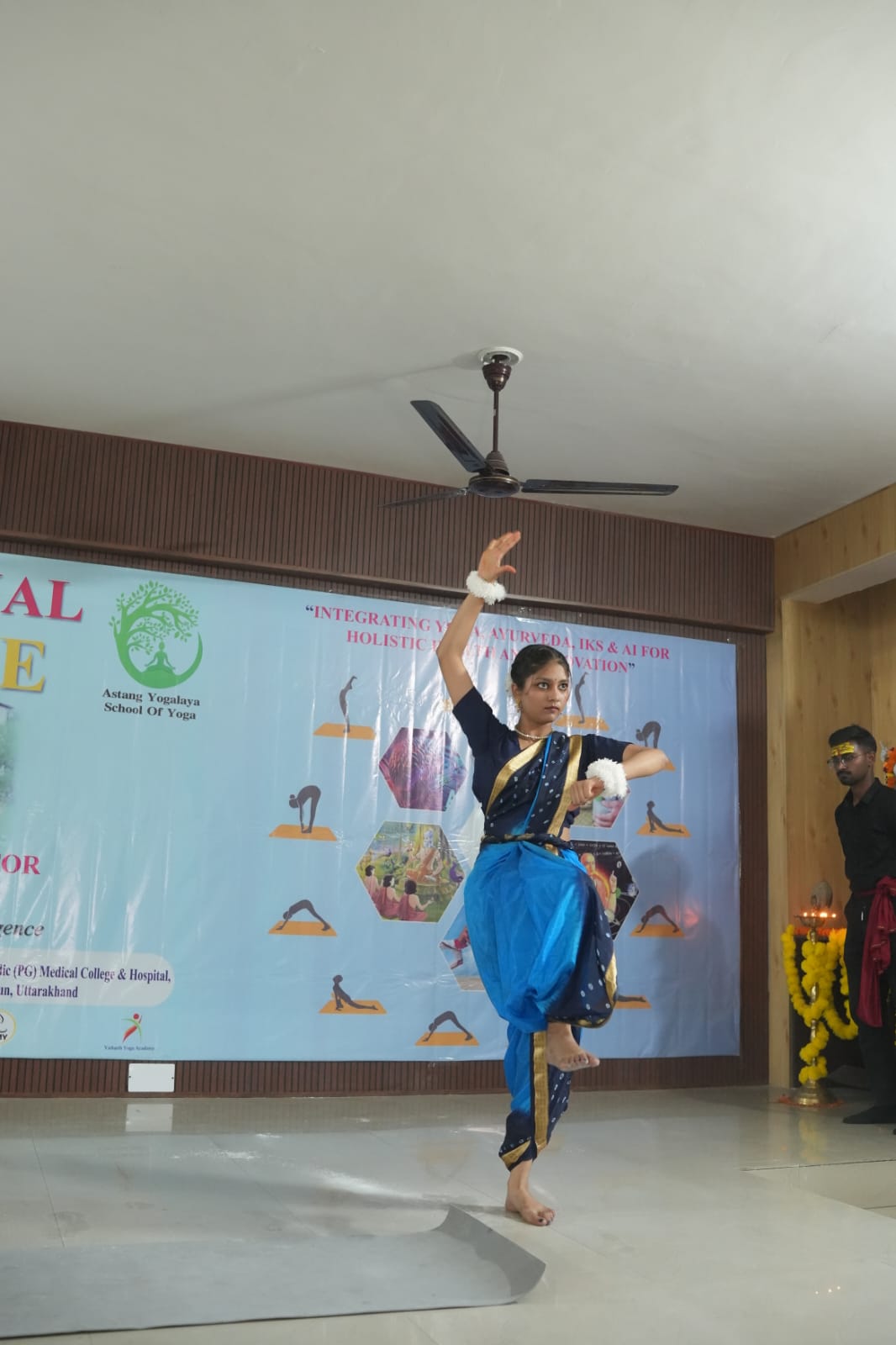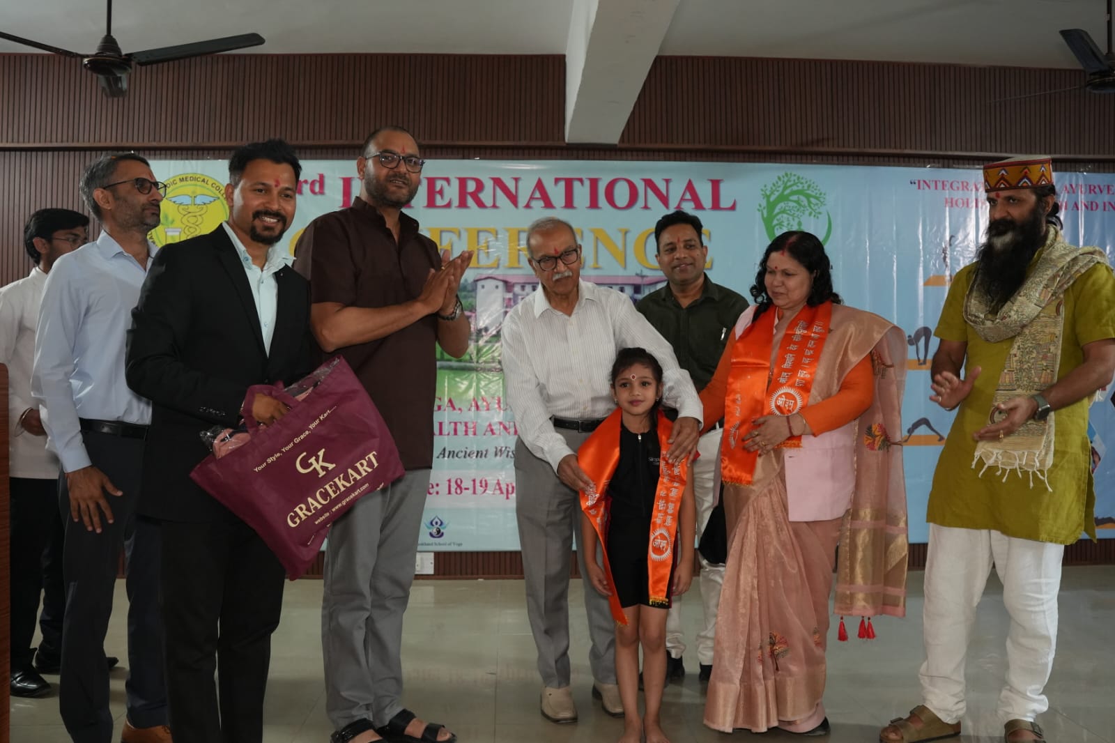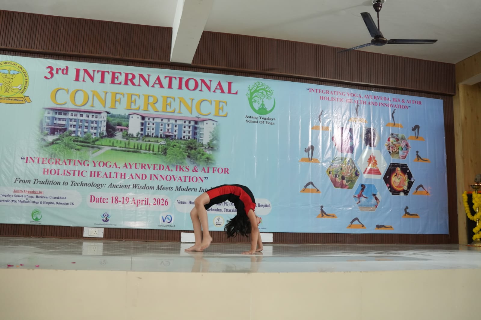 कार्यक्रम के दौरान 9 वर्षीय बालिका हर्षिका रिखारी ने विभिन्न योग मुद्राओं की मनमोहक प्रस्तुति देकर उपस्थित शोधार्थियों एवं दर्शकों को मंत्रमुग्ध कर दिया।