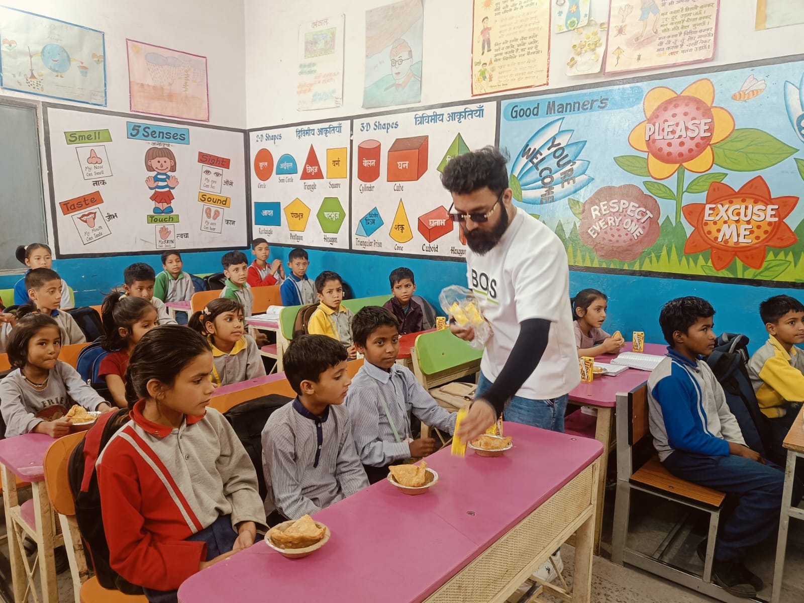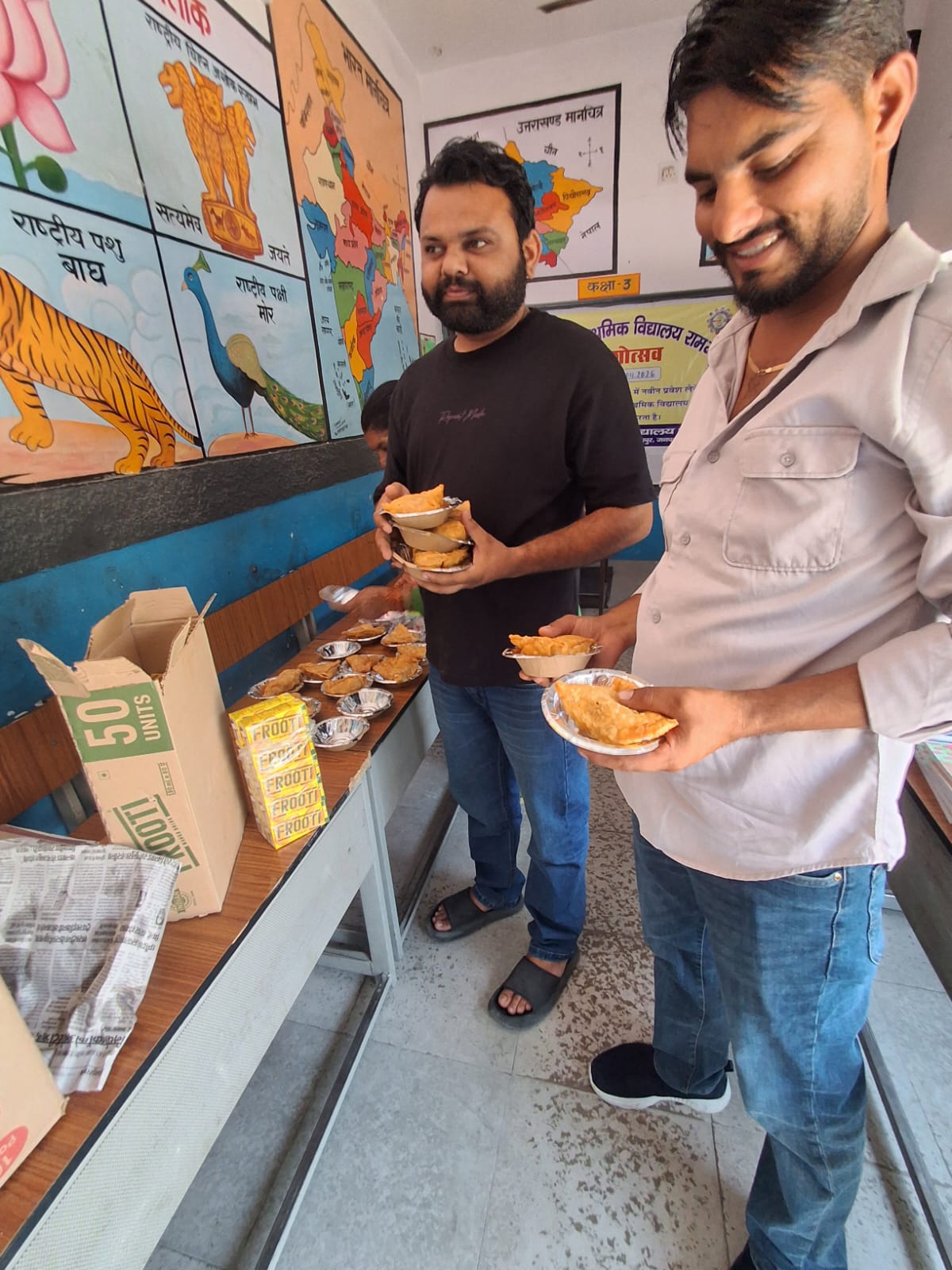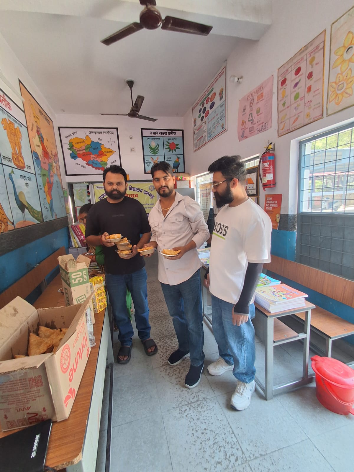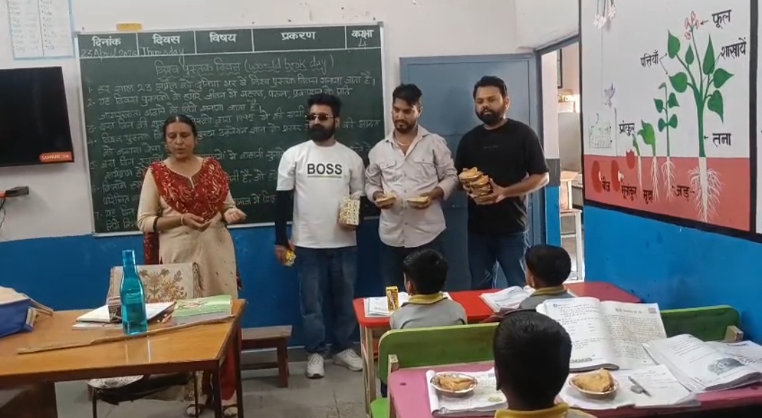 (130 छात्र-छात्राओं को टॉफियां, फ्रूटी तथा समोसे वितरित किये)