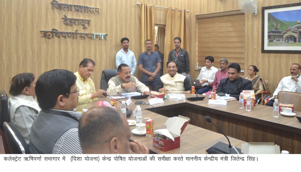मा0 केन्द्रीय मंत्री भारत सरकार डाॅ0 जितेन्द्र सिंह की अध्यक्षता में कलेक्ट्रेट ऋषिपर्णा सभागार में (दिशा योजना) केन्द्र पोषित योजनाओं की समीक्षा बैठक आहूत की गई। इस अवसर पर  डाॅ0 रमेेश पोखरियाल निशंक, वित्त मंत्री उत्तराखण्ड सरकार  प्रेम चंद अग्रवाल, राज्यसभा सांसद नरेश बंसल, जिलाधिकारी डाॅ0 आर राजेश कुमार ने मा0 मंत्री भारत सरकार का पुष्पगुच्छ भेंट कर स्वागत किया।