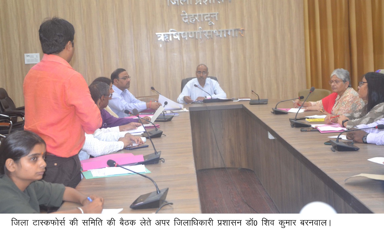 अपर जिलाधिकारी ने पिछली बैठक में जिलाधिकारी महोदया द्वारा दिये गये निदेशों के अनुपालन में सम्बन्धित विभागों, श्रम विभाग, पुलिस विभाग, शिक्षा विभाग, जिला प्रोबेशन अधिकारी, बाल कल्याण समिति आदि द्वारा दिये गये निर्देशो के सम्बन्ध में समीक्षा की गयी। बाल श्रम टास्क फोर्स (डीटीएफ) द्वारा जनपद में 06 बाल श्रमिक रेस्क्यू/चिन्हित किये गये जिनके नियोजको के विरूद्ध प्रथम सूचना रिर्पोट (एफआईआर) पुलिस विभाग में दर्ज करायी गयी है। अपर जिलाधिकारी महोदय द्वारा बैठक मे निर्देश दिये गये कि जनपद में विगत 2-3 वर्षों में बनी अवैध बस्तीयों तथा उनमे रह रहें परिवारों/बाल श्रमिकों, कूड़ा बीनने वाले बच्चे, भृक्षावत्ति में लिप्त बच्चों की मैंपींग कर विस्तृत रिर्पोट तैयार की जाये। इस सम्बन्ध में एक हेल्पलाईन नं० जारी किया जाये। जिला प्रशासन द्वारा देहरादून क्षेत्रान्तर्गत अवस्थित रिर्सोट/होटल आदि के निरीक्षण हेतु विभागों की एक टीम बनायी गयी है जिसमें अनाधिकृत स्पा सेन्टरों का भी निरीक्षण किया जायें, जिससे शहर में बढ़ रहें अपराधो पर रोक लग सके। तथा शिक्षा विभाग को निर्देशित किया गया कि बाल श्रम टास्क फोर्स (डीटीएफ) द्वारा चिन्हित बच्चों के शैक्षणिक पुर्नवास के सम्बन्ध में समयान्तर्ग कार्यवाही कर विस्तृत सूचना श्रम विभाग को उपलब्ध करायी जाये एवं नूकड़/नाटक के माध्यम से बाल श्रम, बाल भृक्षावत्ति, बाल नशाखोरी आदि के सम्बन्ध में लोगो का जागरूक किया जायें।