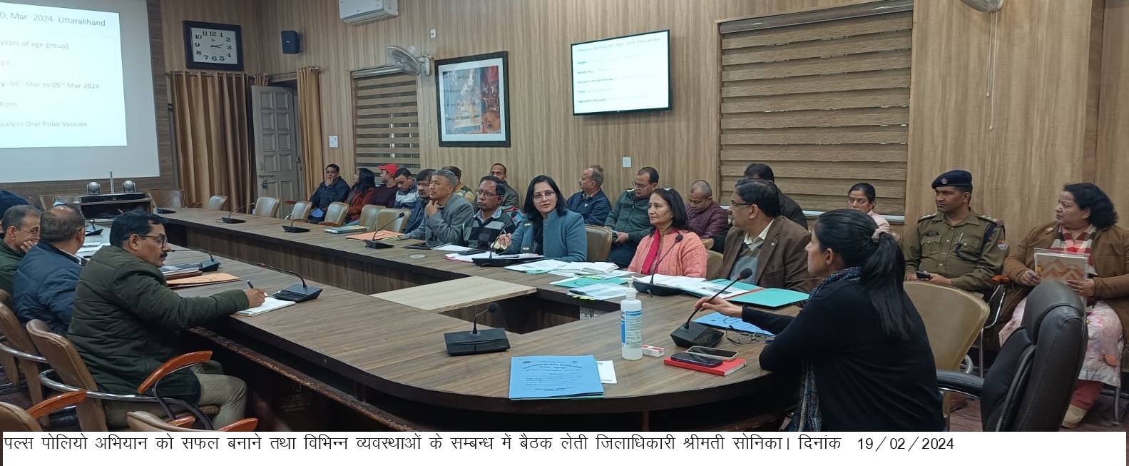 जिलाधिकारी श्रीमती सोनिका की अध्यक्षता में ऋषिपर्णा सभागार कलेक्टेट में पल्स पोलियो अभियान को सफल बनाने तथा बूथ दिवस 03 मार्च 2024 को 0-5 वर्ष तक के सभी बच्चों को खुराक पिलाने, पोलियो बूथ पर समस्त, सुविधाएं एवं व्यवस्थाएं बनाने के सम्बन्ध में बैठक आयोजित की गई।