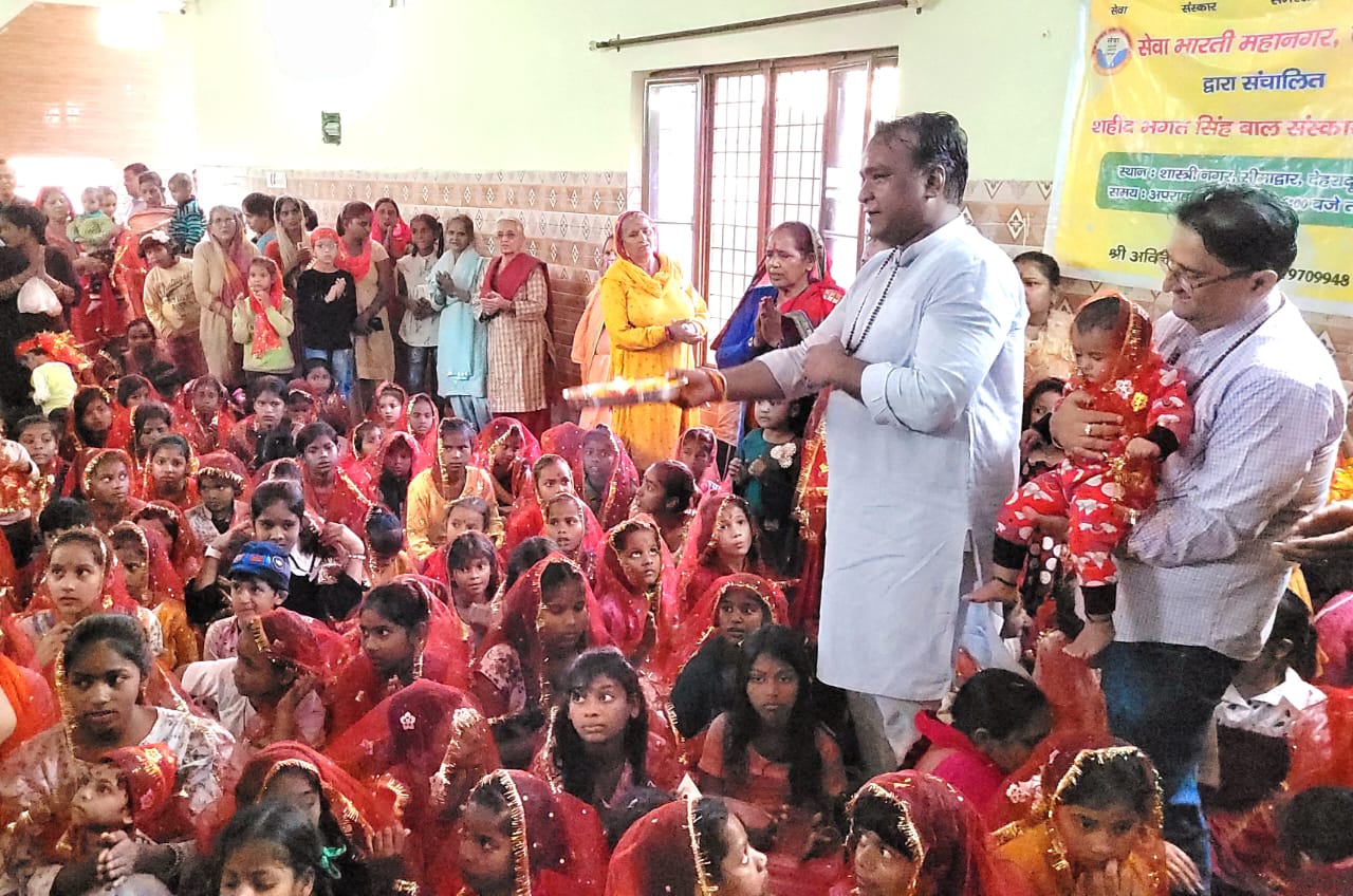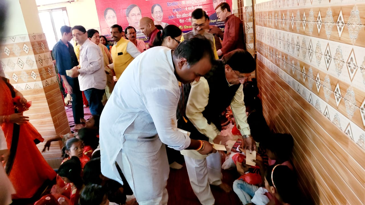 सर्वप्रथम महानगर अध्यक्ष सिद्धार्थ उमेश अग्रवाल जी की अध्यक्षता एवं सभी अतिथियों की विशेष उपस्थिति में कन्याओं का विधिवत आरती पूजन चरण स्पर्श एवं उपहार वितरण कर मां शक्ति को स्मरण करते हुए साथ मां शक्ति का यश गान सारे विश्व में फैले ऐसी मनोकामनाओं के साथ पूजन किया गया।