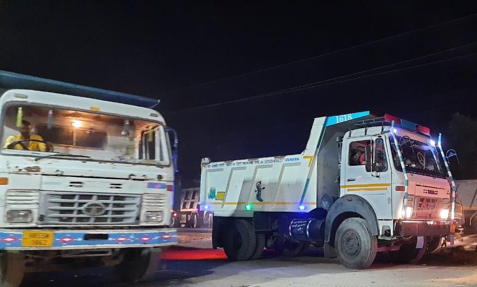 (2 टैक्टर ट्राॅली, 2 डम्पर, 1 ट्रक सीज)