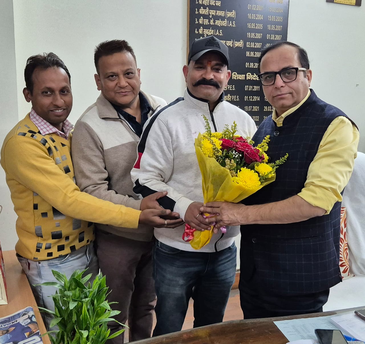 उत्तराखंड प्राइमरी टाचर्स एसोसिएशन /उत्तराखंड प्राथमिक शिक्षक संघ देहरादून के जिलाध्यक्ष धर्मेन्द्र सिंह रावत के नेतृत्व में नव नियुक्त निदेशक माध्यमिक शिक्षा डॉ. मुकुल सती का पुष्प गुच्छ भेंट कर निदेशक (माध्यमिक शिक्षा) का स्वागत किया।