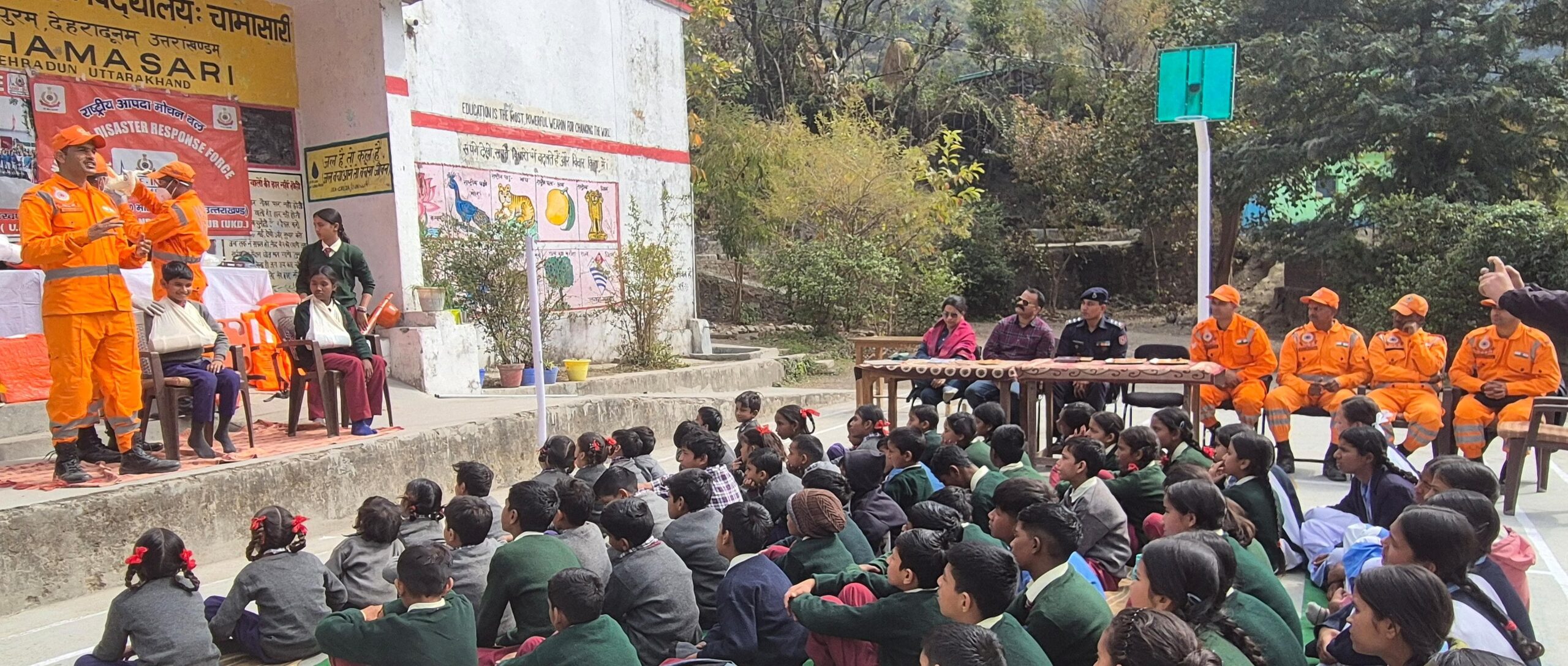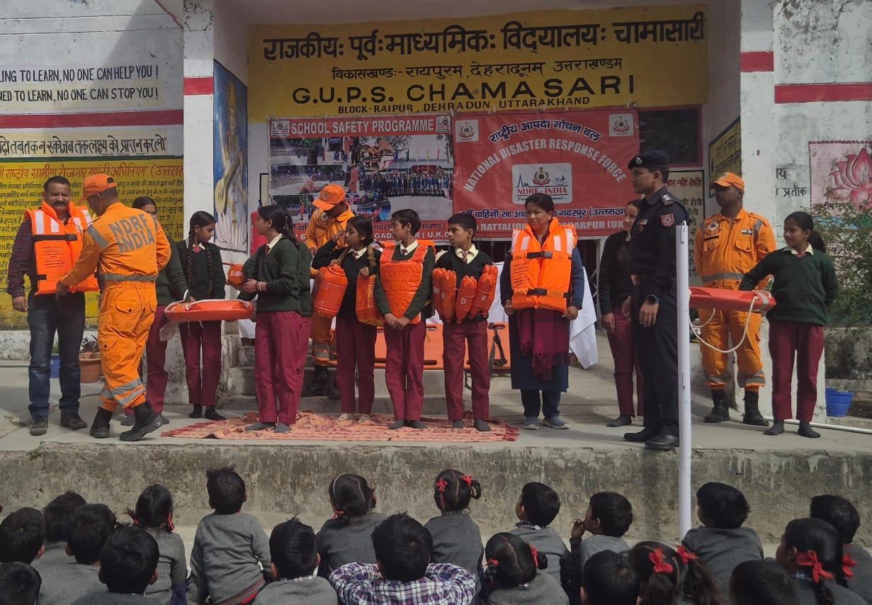 NDRF 15 बटालियन के इंस्पेक्टर श्रीमान आनंद सिंह डिगारी के नेतृत्व में जाबांज 13 सदस्यीय दल के द्वारा राजकीय प्राथमिक विद्यालय चौकी चुंगी चामासारी रायपुर, राजकीय पूर्व माध्यमिक विद्यालय चामासारी और हाई स्कूल चामासारी रायपुर देहरादून के बच्चों के मध्य प्राकृतिक और मानव जनित आपदा प्रबंधन पर विस्तार से प्रशिक्षण कार्यक्रम का आयोजन किया गया।