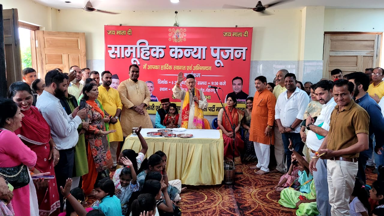 (पूर्व मुख्यमंत्री उत्तराखंड श्री भगत सिंह कोश्यारी, राजपुर के विधायक खजान दास, दर्जा धारी मंत्री डॉ देवेंद्र भसीन,मधु भट्ट की गरिममय उपस्थिति में 501 कन्याओं का पूजन किया)