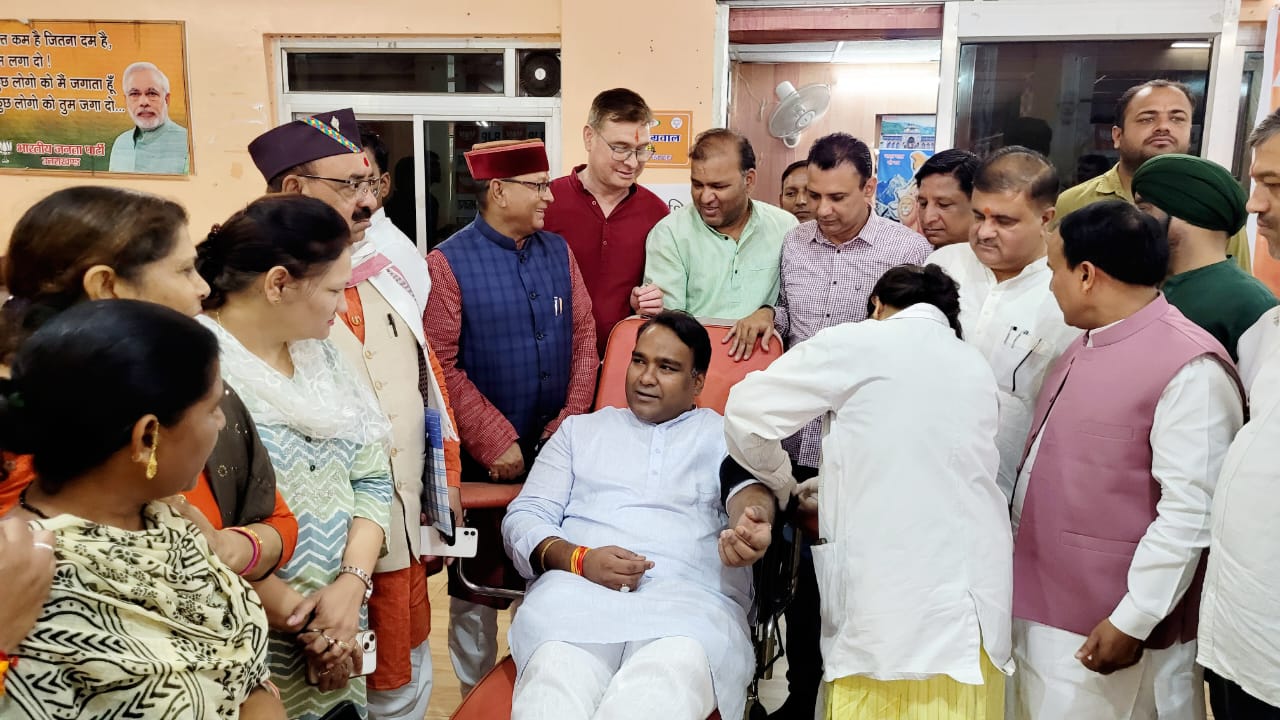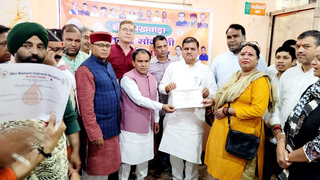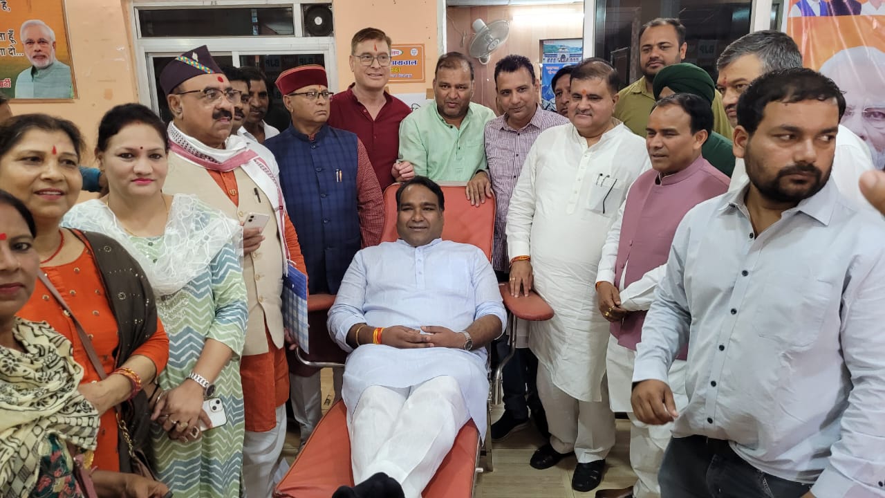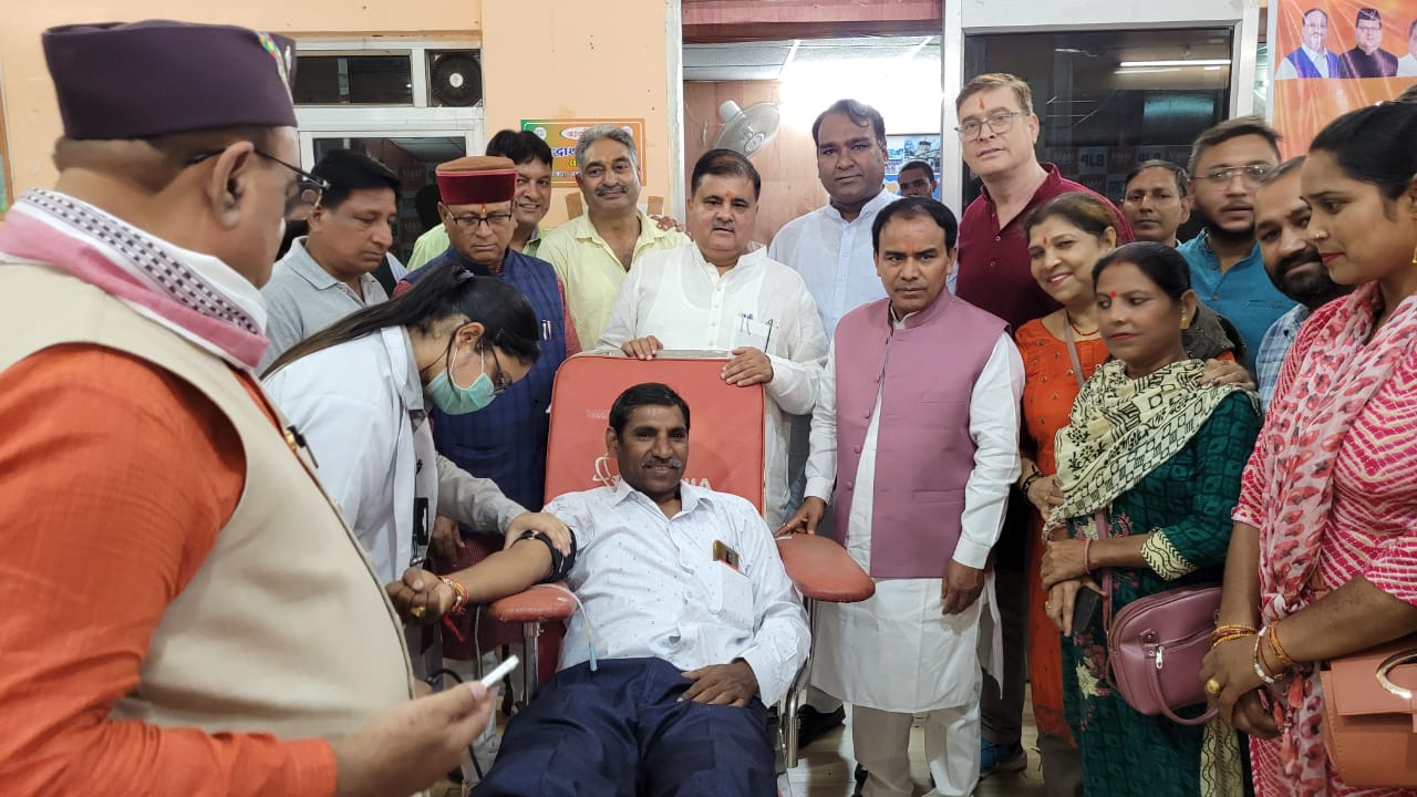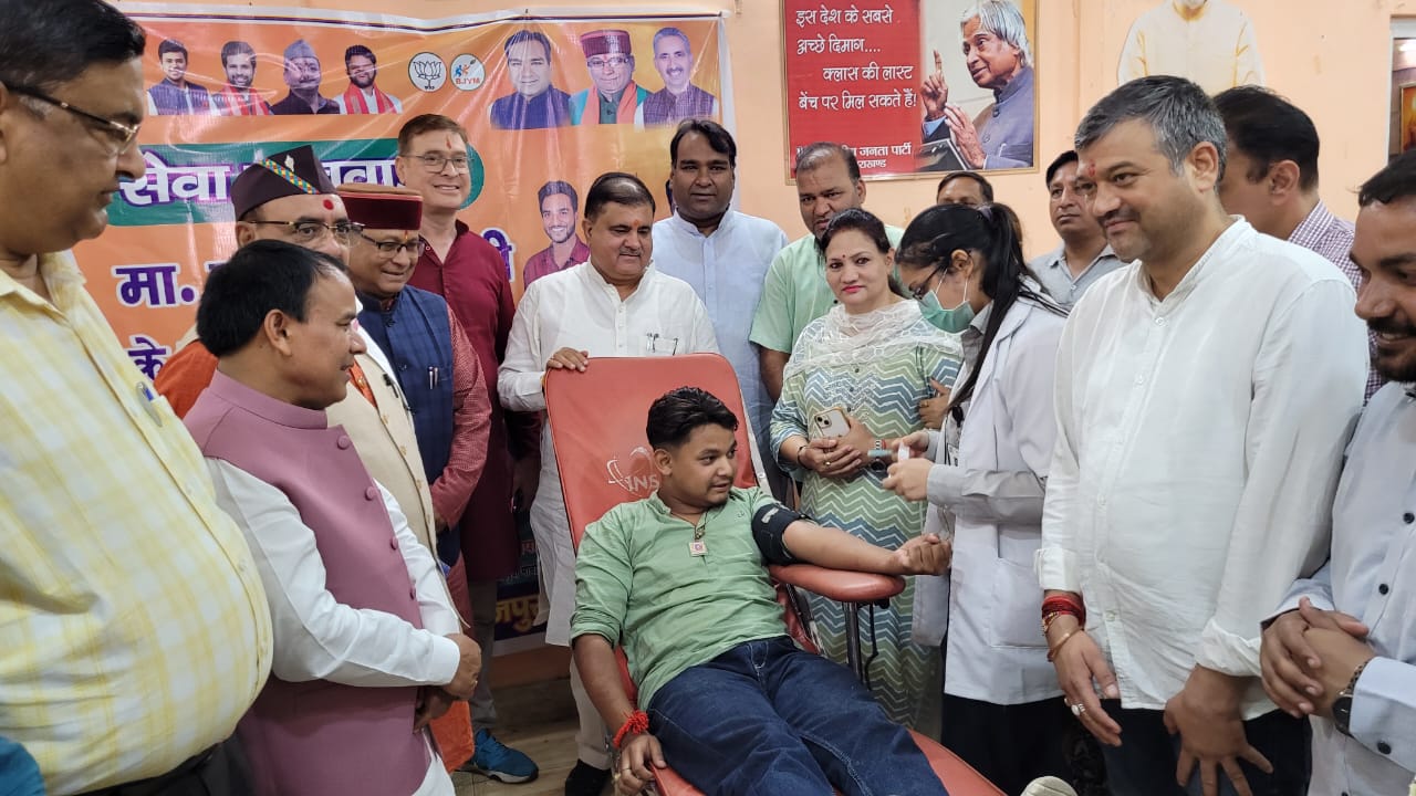 कार्यक्रम में भारतीय जनता पार्टी के प्रदेश अध्यक्ष आदरणीय महेंद्र भट्ट जी गरिमा में उपस्थिति रही अपने रक्तदान शिविर का उद्घाटन किया ।सभी युवाओं का उत्साहवर्धन करते हुए बताया कि देशव्यापी सेवा पखवाड़ा के अंतर्गत हम सभी कार्यकर्ता देश के प्रधानमंत्री आदरणीय नरेंद्र मोदी जी को जन्मदिवस की शुभकामनाएं देते हैं इस सेवा पखवाड़ा के अंतर्गत पूरे देश में अनेक कार्यक्रम किया जा रहे हैं। देश व प्रदेश का युवा आज नरेंद्र मोदी जी के नेतृत्व में नई सोच के साथ आगे बढ़ रहा है।