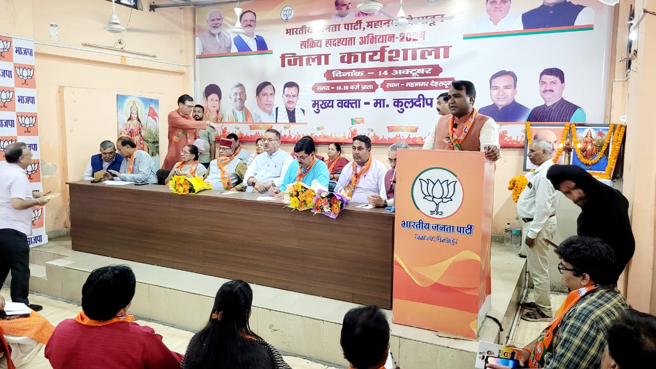 कार्यक्रम में मुख्य वक्ता भाजपा प्रदेश उपाध्यक्ष एवं महानगर देहरादून प्रभारी प्रभारी सदस्यता अभियान कुलदीप कुमार के द्वारा कार्यशाला में सक्रिय सदस्यों की समाज में क्या भूमिका हो इस पर विस्तृत चर्चा की संगठन में प्रत्येक कार्यकर्ता भी की नैतिक जिम्मेदारी है कि वह समय सीमा के अंतराल भारतीय जनता पार्टी का प्रारंभिक सदस्य से लेकर सक्रिय सदस्यता की भूमिका किस प्रकार निभाए इसके लिए कार्यकर्ताओं को सदस्यता फार्म के माध्यम से जनता के बीच में जाकर सदस्यों को सदस्यता ग्रहण करनी है। हम लोग सदस्यता के माध्यम से इतिहास बनाने की ओर बढ़ रहे हैं अभी तक भारतीय जनता पार्टी के 8 करोड़ से अधिक सदस्य बन चुके हैं उत्तराखंड राज्य में भारतीय जनता पार्टी के 17 लाख 50 हजार से अधिक सदस्य बन चुके हैं। हम लोगों ने पिछले दिनों विशेष सदस्यता अभियान कार्यक्रम के माध्यम से प्रत्येक मंडल के बूथों तक जाकर समाज के लोगों को भारतीय जनता पार्टी की सदस्यता ग्रहण कराई है।