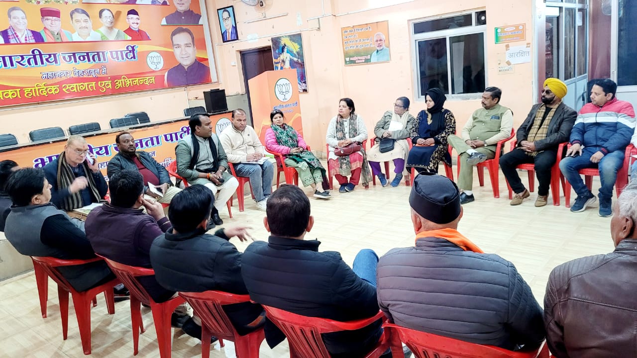 बैठक में वरिष्ठ उपाध्यक्ष राजेंद्र ढिल्लों, संध्या थापा, संतोष सेमवाल, बबीता सहोत्रा,रतन सिंह चौहान, महानगर महामंत्री विजेंद्र थपलियाल,सुरेंद्र राणा, महानगर मंत्री देवेंद्र पाल, मोंटी, गोविंद मोहन, विमल उनियाल ,कार्यालय प्रभारी विनोद शर्मा, प्रदीप कुमार, अक्षत जैन ,शकुल उनियाल, मोर्चा अध्यक्ष राकेश आर्य, बलदेव नेगी ,यासमीन,आलम खान, मंडल अध्यक्ष राहुल लारा ,विनोद पुंडीर ,अंजू बिष्ट ,प्रकाश, मोतीराम आदि कार्यकर्ता उपस्थित रहे।