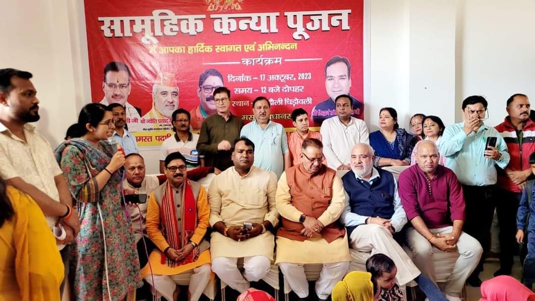 महानगर के अध्यक्ष सिद्धार्थ उमेश अग्रवाल के नेतृत्व में नवरात्रि पर चिडोवाली कंडोली में  सामूहिक कन्या पूजन किया।