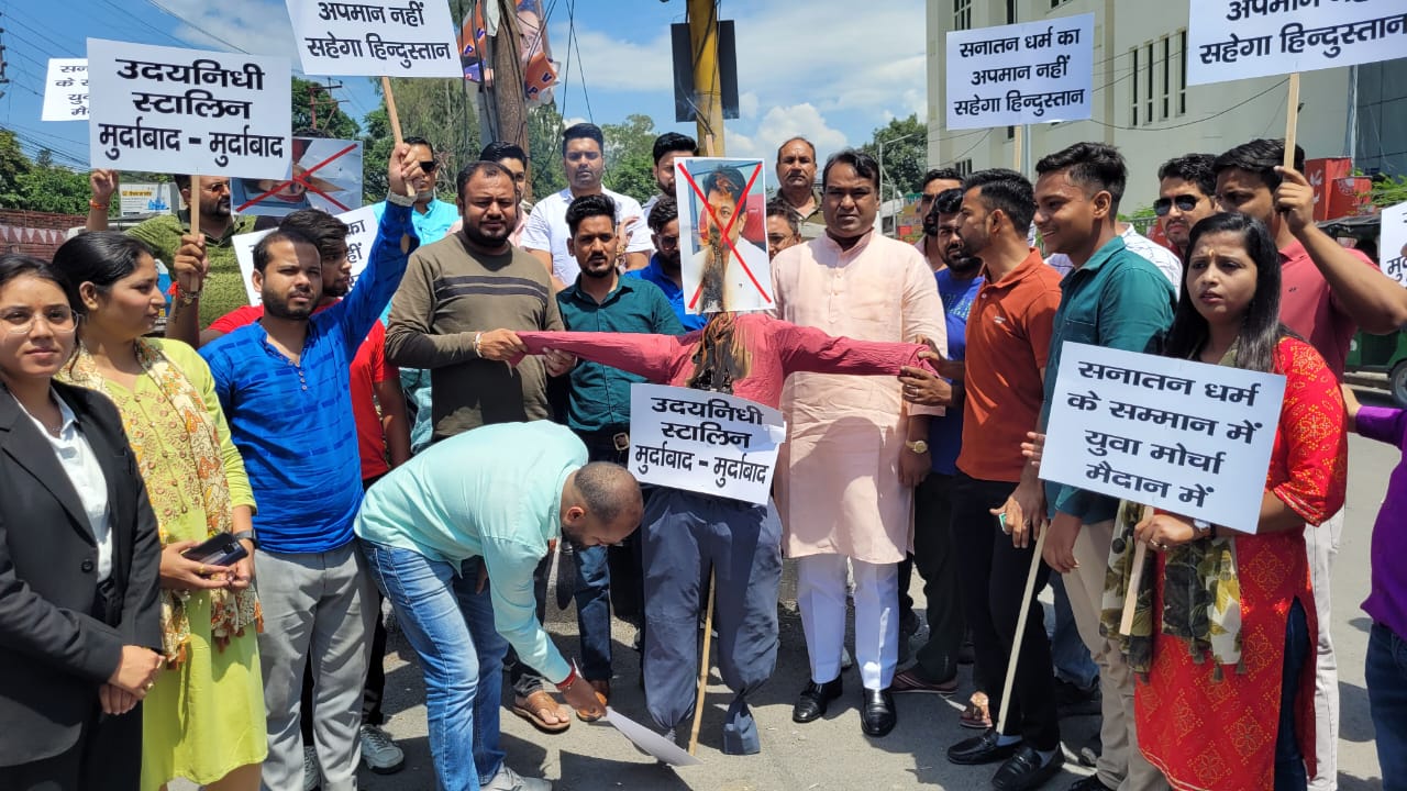 भारतीय जनता पार्टी के महानगर अध्यक्ष सिद्धार्थ उमेश अग्रवाल की की उपस्थिति में महानगर युवा मोर्चा ने तमिलनाडु के मुख्यमंत्री एम के स्टालिन के बेटे एवं राज्य सरकार में मंत्री उदय निधि का मुर्दाबाद के नारों के साथ पुतला दहन कार्यक्रम किया गया।