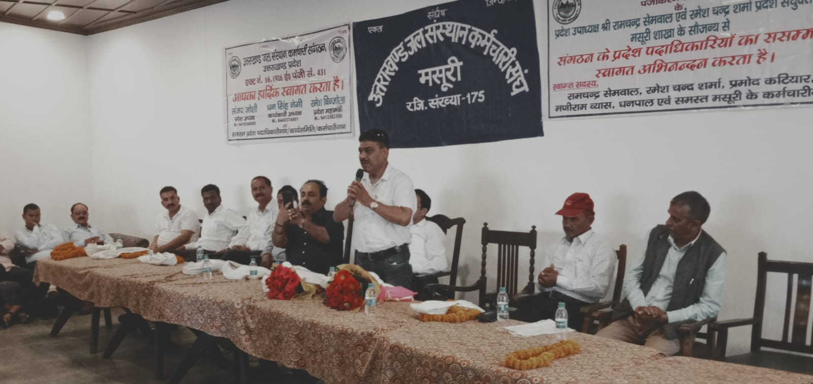 उत्तराखंड जल संस्थान कर्मचारी संगठन मसूरी शाखा में आज प्रदेश महामंत्री श्री रमेश बिंजोला जी, श्री श्याम सिंह नेगी जी , शिशुपाल सिंह रावत जी, श्री संदीप मलहोत्रा जी, श्री धन सिंह चौहान जी, श्री धूम सिंह सोलंकी जी, श्री सतीश पार्छा, श्री प्रेम सिंह नेगी जी श्री लाल सिंह रौतेला जी, श्री विरेन्द्र सिंह नेगी जी श्री रणवीर सिंह पँवार जी, श्री दीपक कुमार, श्री चन्द्र सिंह, श्री बहादुर सिंह, श्री दीपक, श्री संजय नेगी , श्री मेहर सिंह , श्री शरद आदि प्रदेश पदाधिकारियों, मंडल पदाधिकारियों का प्रदेश उपाध्यक्ष श्री रामचन्द्र सेमवाल, मसूरी शाखा अध्यक्ष श्री प्रमोद कटियार,शाखा सचिव श्री महावीर प्रसाद नौटियाल, श्री रमेश चन्द्र शर्मा, श्री मनीष कुमार अग्रवाल, श्री धनपाल सिंह पँवार, श्री हिमाँशू पंत द्वारा शीर्षनेतृत्व पदाधिकारियों का सम्मान समारोह आयोजित किया गया।