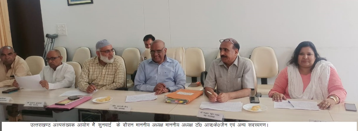आज उत्तराखण्ड अल्पसंख्यक आयोग सुनवाई/बैठक का आयोजन माननीय अध्यक्ष डाॅ0 आर0के0जैन, की अध्यक्षता में सम्पन्न हुआ। सुनवाई/बैठक में मा0 उपाध्यक्ष मज़हर नईम नवाब, सदस्यगण गुलाम मुस्तफा, वरीश, असगर अली, श्रीमती सीमा जावेद, सन्तोख सिंह नागपाल, अब्दुल हफीज राही, सचिव, उत्तराखण्ड अल्पसंख्यक आयोग जे.एस.रावत, देहरादून एवं श्रीमती शमा प्रवीन, वैयक्तिक सहायक, उत्तराखण्ड अल्पसंख्यक आयोग, उपस्थित रहे।