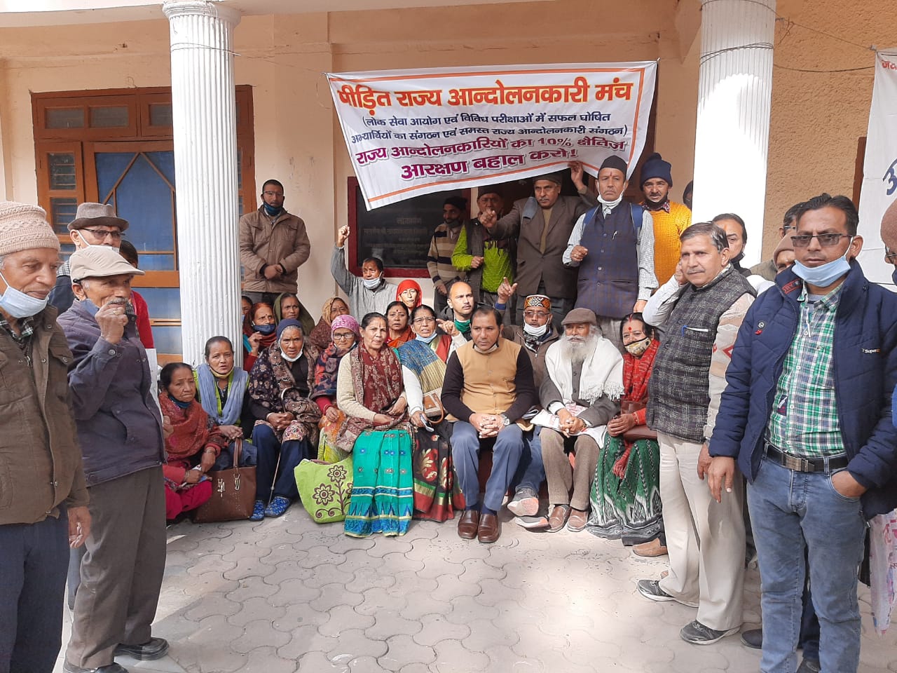 10 % क्षैतिज आरक्षण की माँग को लेकर राज्य आंदोलनकारियों का उपवास आज चौथे दिन भी जारी रहा। कल राज्य आंदोलनकारियों ने सरकार के रवैये से क्षुब्ध होकर 1 जनवरी को आत्मदाह करने का नोटिस दिया था। इससे आक्रोशित होकर बड़ी संख्या में राज्य आंदोलनकारी आज शहीद स्मारक पहुंच गए।वहाँ राज्य आंदोलनकारियों ने एक सभा की।