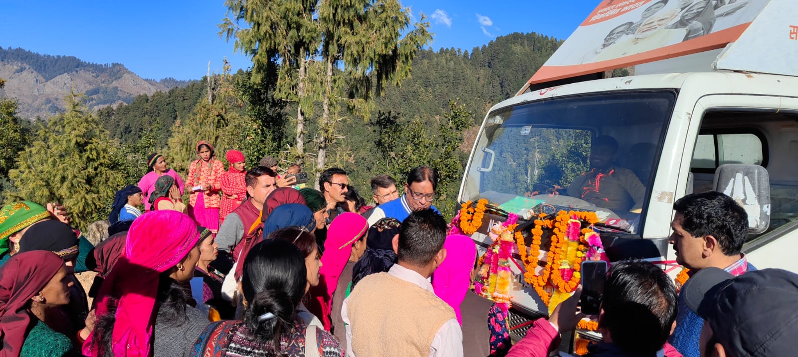 विकसित भारत संकल्प यात्रा आज नौवें दिन जनजातीय क्षेत्र चकराता के लोहारी व मुगाड़ गांव पहुंची। जनजातीय क्षेत्र के ग्रामीणों को संकल्प यात्रा के माध्यम सरकार की जनकल्याणकारी योजनाओं की विस्तृत जानकारियां दी जा रही है तथा पात्र लाभार्थियों को योजनाओं से आच्छादित किया जा रहा है। जनजातीय समुदाय द्वारा संकल्प यात्रा का पारम्परिक रूप से ढोल,नगाड़ों के साथ स्वागत किया और माननीय प्रधानमंत्री जी एवं मुख्यमंत्री जी का आभार जताया। विकसित भारत संकल्प यात्रा के अंर्तगत जनजाति क्षेत्र के दोनों गांवों में आयोजित कार्यक्रम में सरकार की जनकल्याकारी योजनाओं की जानकारी आम जनता को दी गई। सरकार की जनकल्याणकारी योजनाओं से लाभार्थियों को लाभान्वित किया गया। रेखीय विभागों के द्वारा अपने-अपने विभागों के विभागीय स्टॉल स्थापित कर सरकार की महत्वाकांक्षी योजनाओं से जनजातीय समुदाय को लाभान्वित किया गया। योजनाओं का लाभ लेने के बारे में विस्तृत जानकारियां दी गई। उप जिलाधिकारी चकराता हरगिरि ने विकसित भारत संकल्प यात्रा के तहत आत्मनिर्भर भारत की संकल्पना को लेकर ग्रामीणों को शपथ दिलाई।