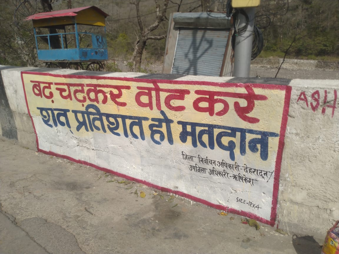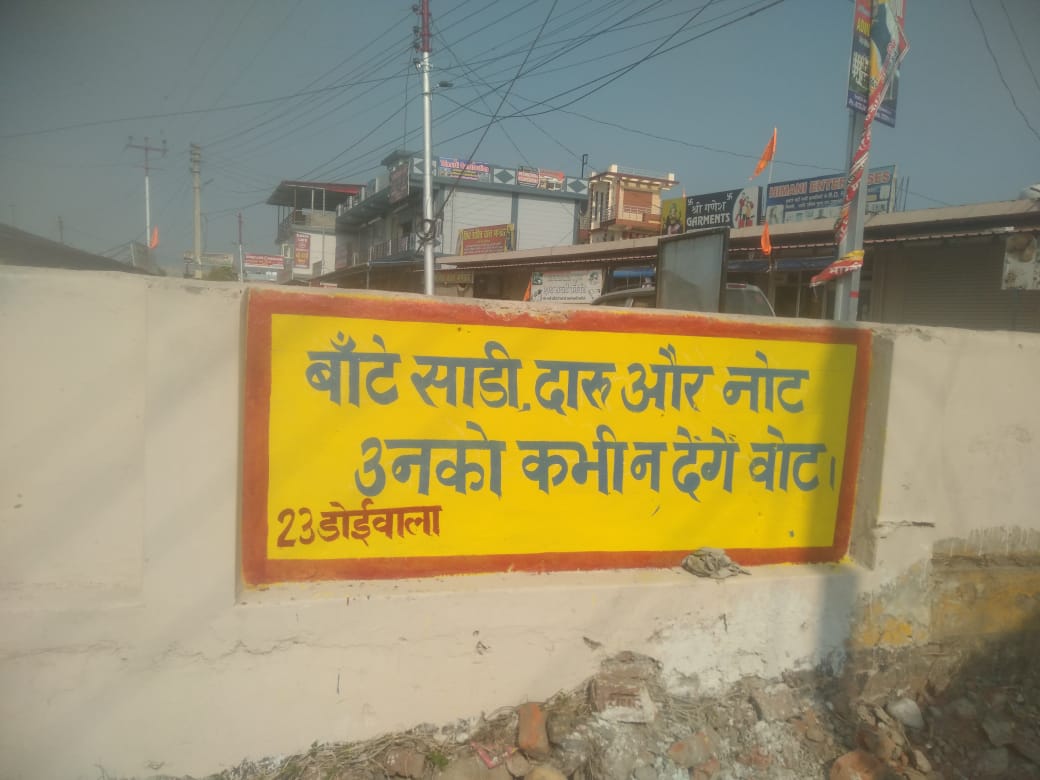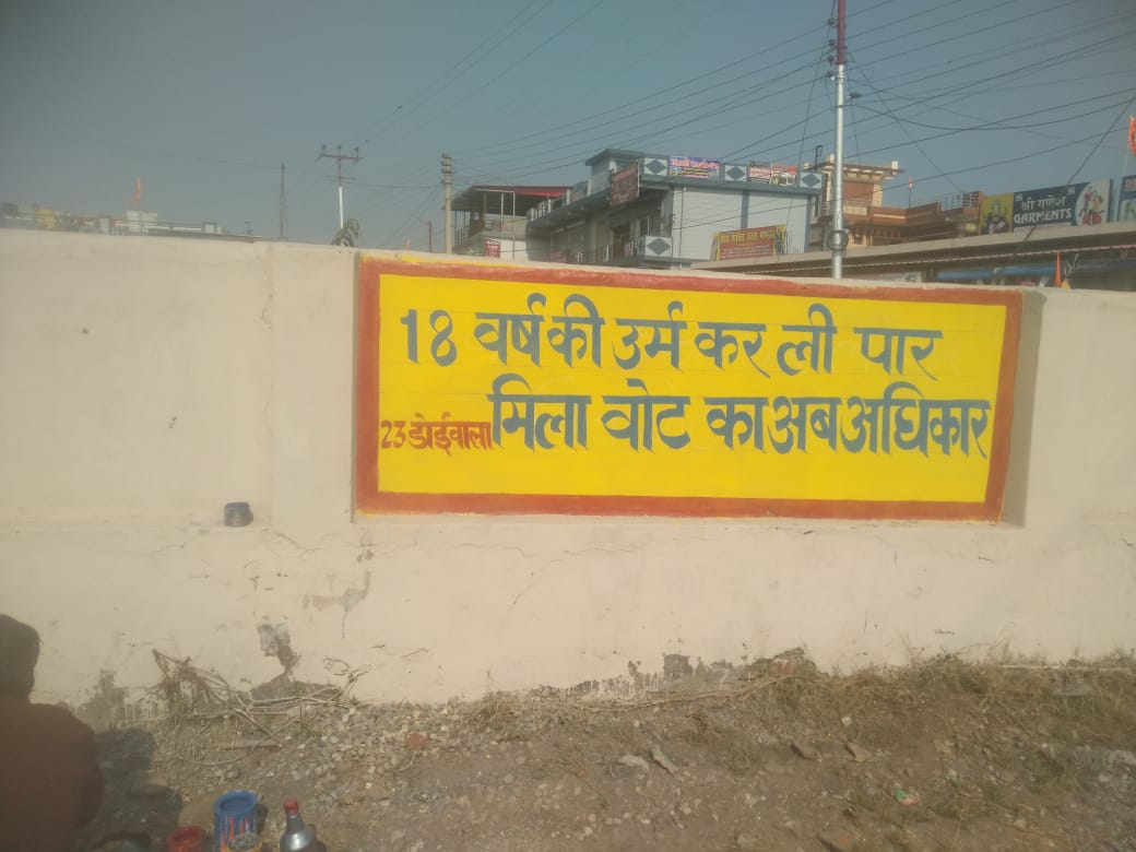 जनपद देहरादून में लोकसभा सामान्य निर्वाचन-2024 की तैयारियों एवं स्वीप के तहत् विभिन्न स्थानों पर वोटर जागरूता अभियान चलाया जा रहा है। जिलाधिकारी/जिला निर्वाचन अधिकारी श्रीमती सोनिका के निर्देशों के अुनपालन में दीवार पेन्टिंग कर मतदाता जागरूकता स्लोगन, बूथ लेवल पर जागरूकता कार्यक्रम, विभिन्न विभागों द्वारा जागरूकता गतिविधि आयोजित की जा रही है।