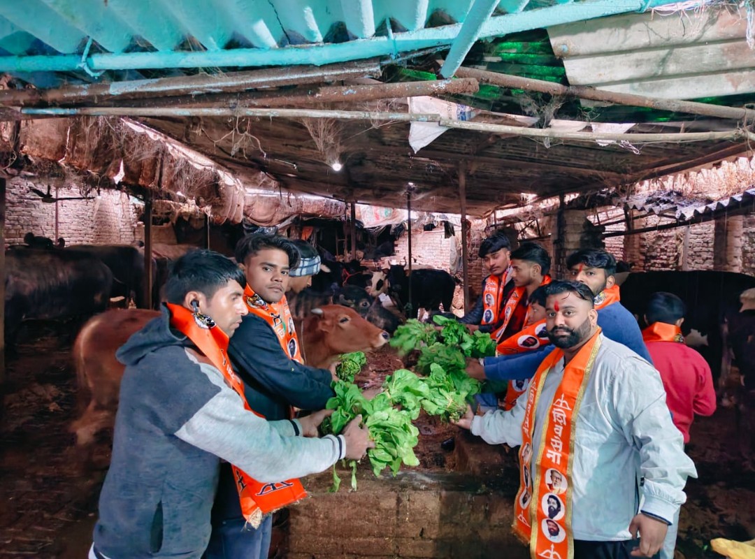 युवा शिव सैनिकों ने दर्जनों गौ माताओं को करवाया भोजन।