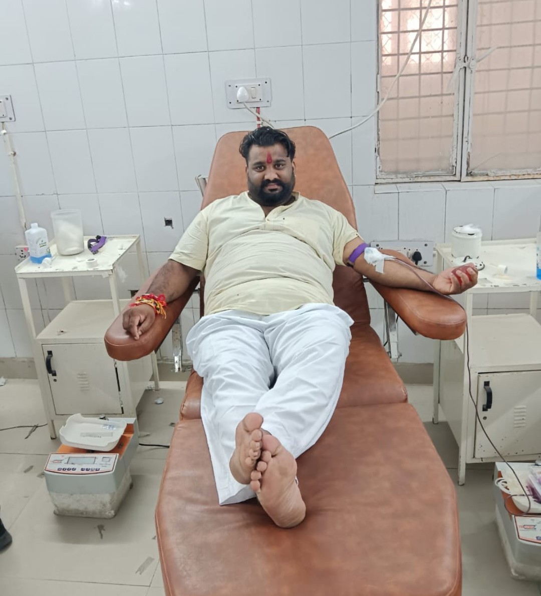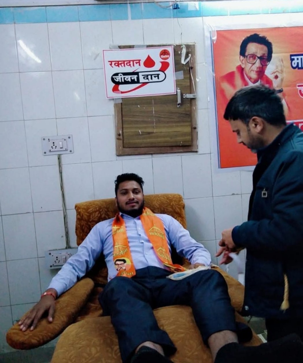 (युवा सेना (शिव सेना) के प्रदेश अध्यक्ष सागर रघुवंशी के नेतृत्व में किया रक्तदान)
